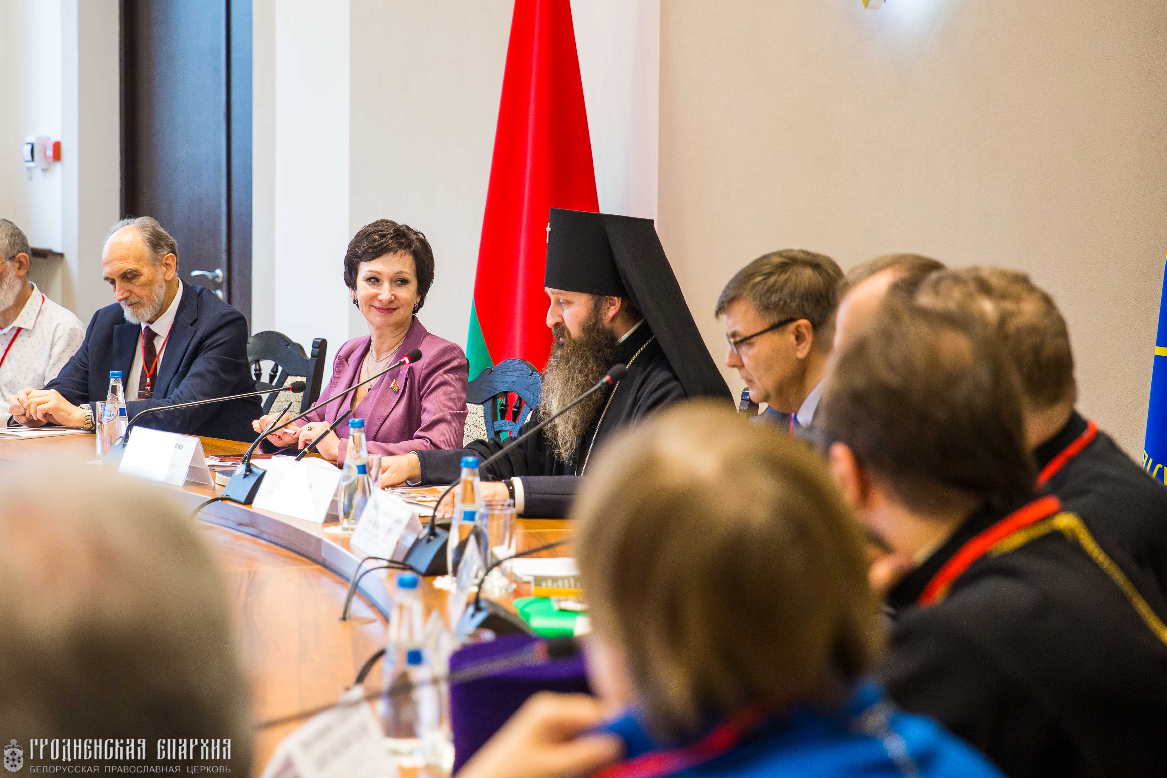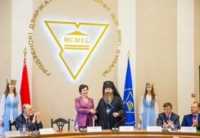 В учреждении образования представителей Гродненской епархии встречала ректор ведущего вуза Принеманского региона Ирина Федоровна Китурко. Со стороны Купаловского университета участие в мероприятии также принимали декан факультета истории, коммуникации и туризма ГрГУ имени Янки Купалы Виктор Александрович Белозорович и доцент кафедры истории Беларуси, археологии и специальных исторических дисциплин ГрГУ имени Янки Купалы Александр Сергеевич Горный.