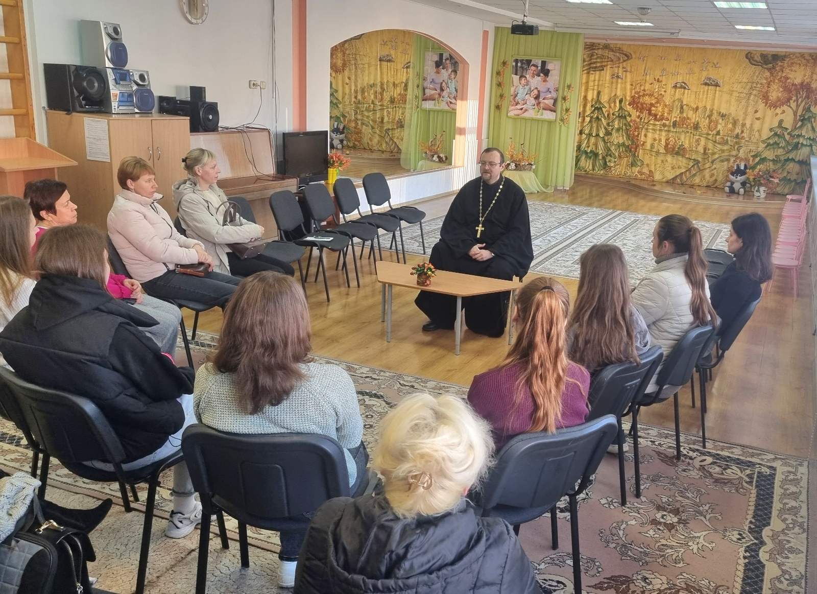 Мероприятие состоялось в рамках Недели родительской любви и просветительской акции «Я и моя семья - без сквернословия». В ходе общения священнослужителя с участниками семейной гостиной обсуждались вопросы значения традиционных семейных ценностей в жизни современного общества, роль отца и матери в воспитании детей, особенности детско-родительских отношений, влияние примера взрослых на поведение ребенка, недопустимость сквернословия в семейном, общественном и профессиональном пространстве.