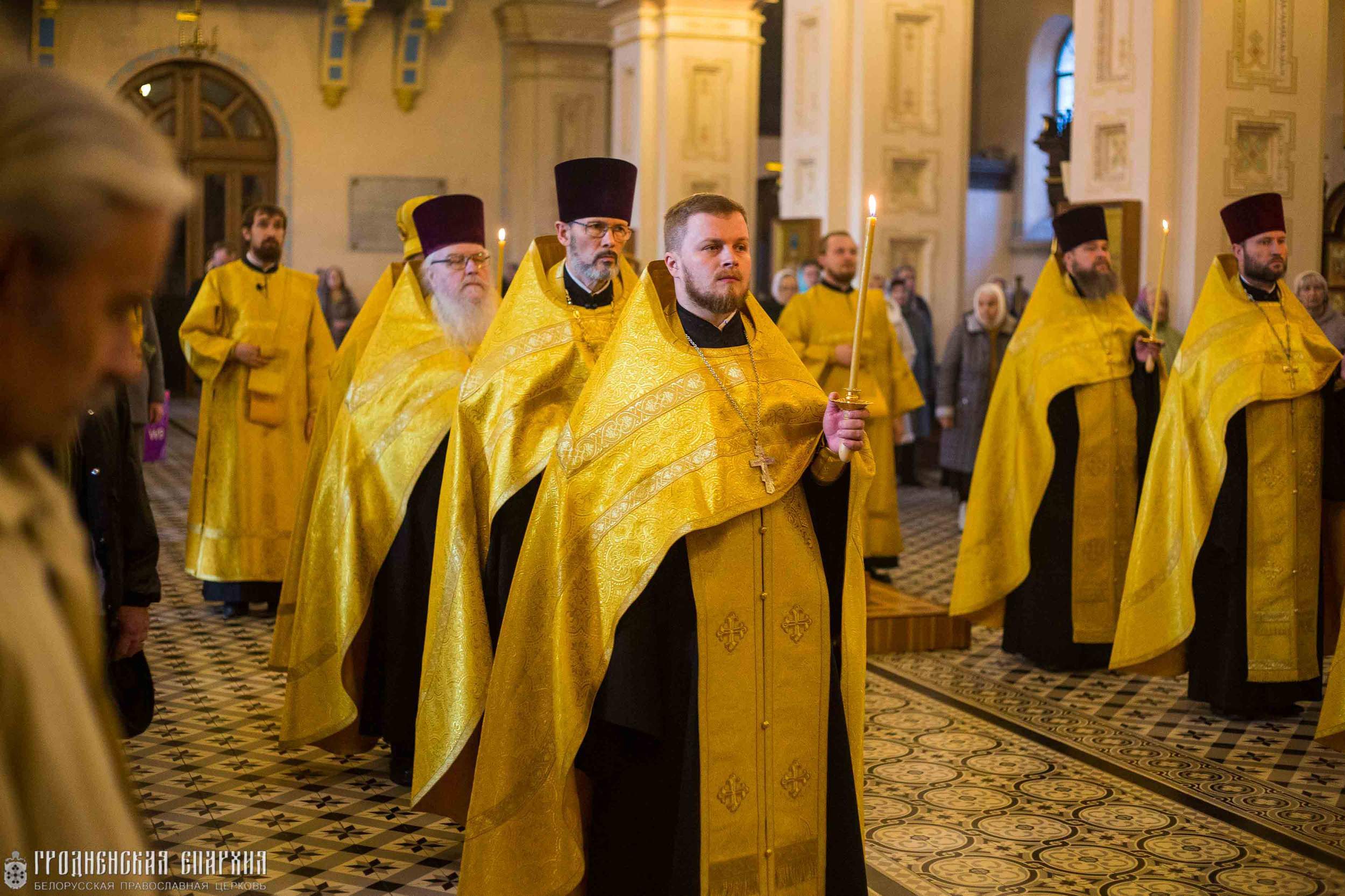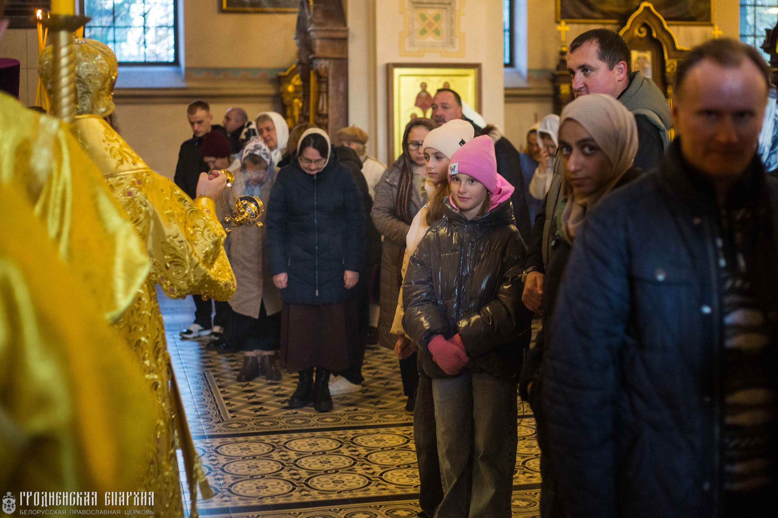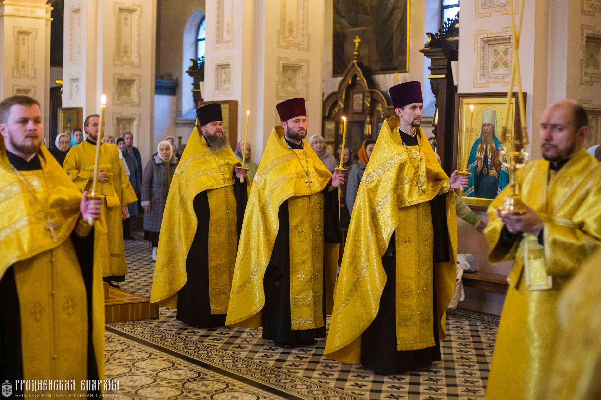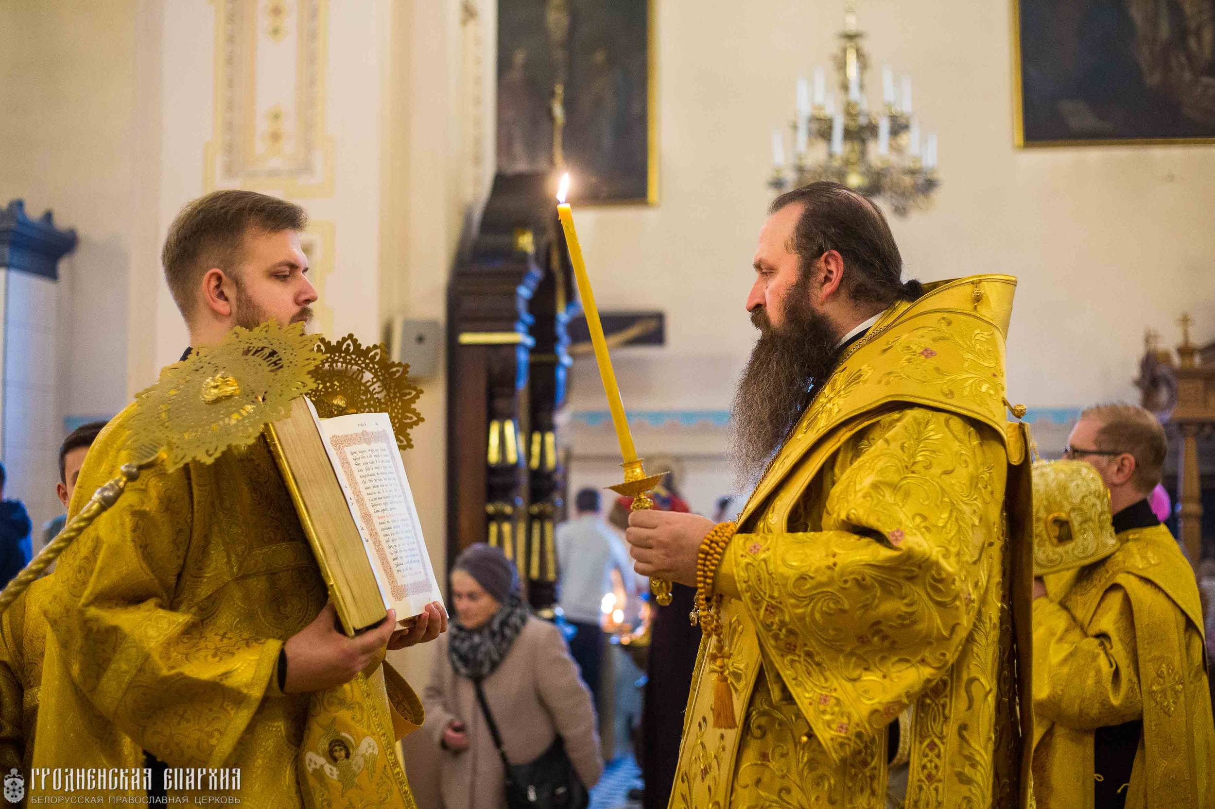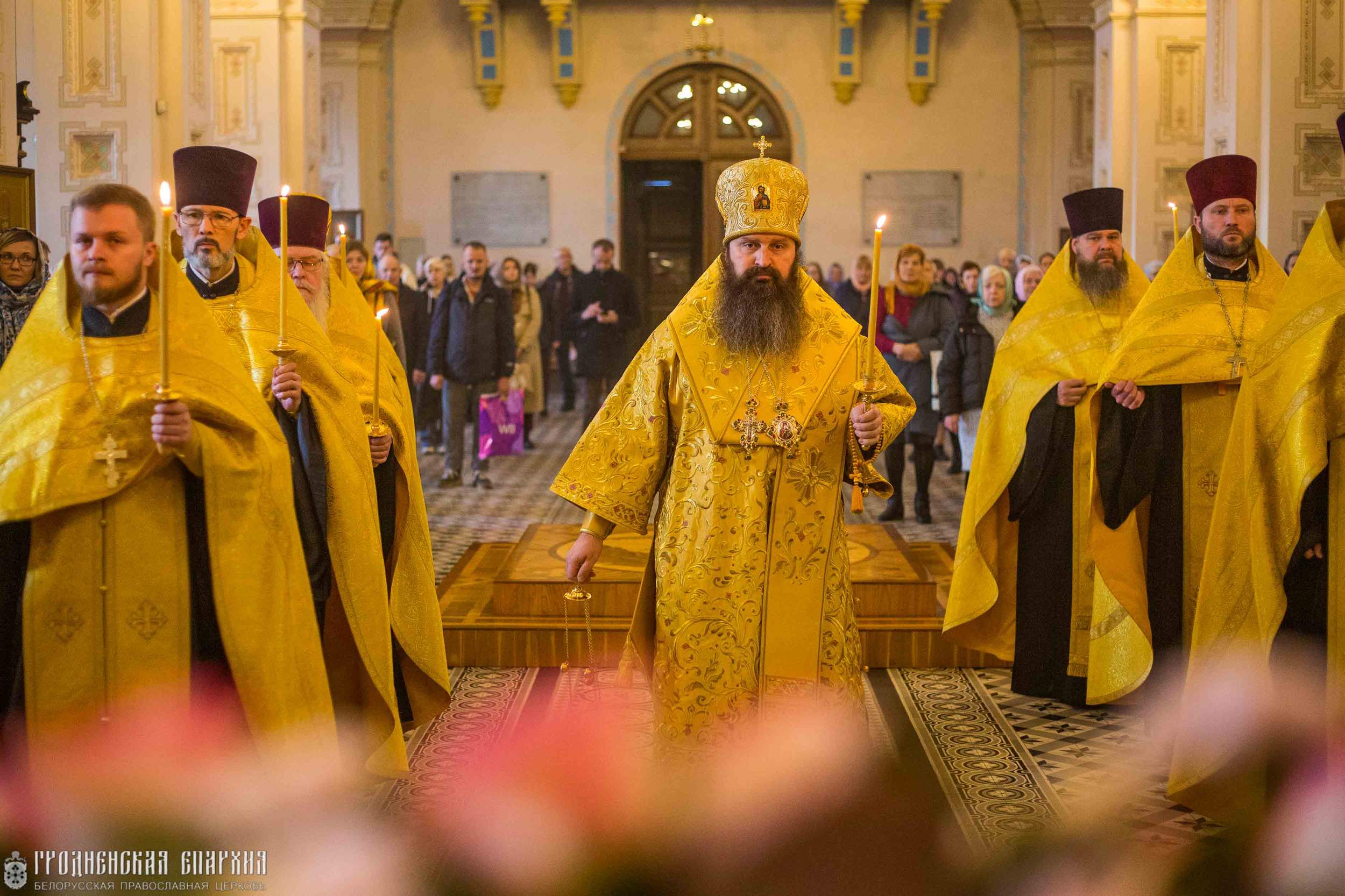 Его Высокопреосвященству сослужили: протоиерей Григорий Беляцкий, настоятель кафедрального собора Покрова Пресвятой Богородицы; протоиерей Андрей Бондаренко, духовник Гродненской епархии; митрофорный протоиерей Александр Ноздрин; клирики кафедрального собора.