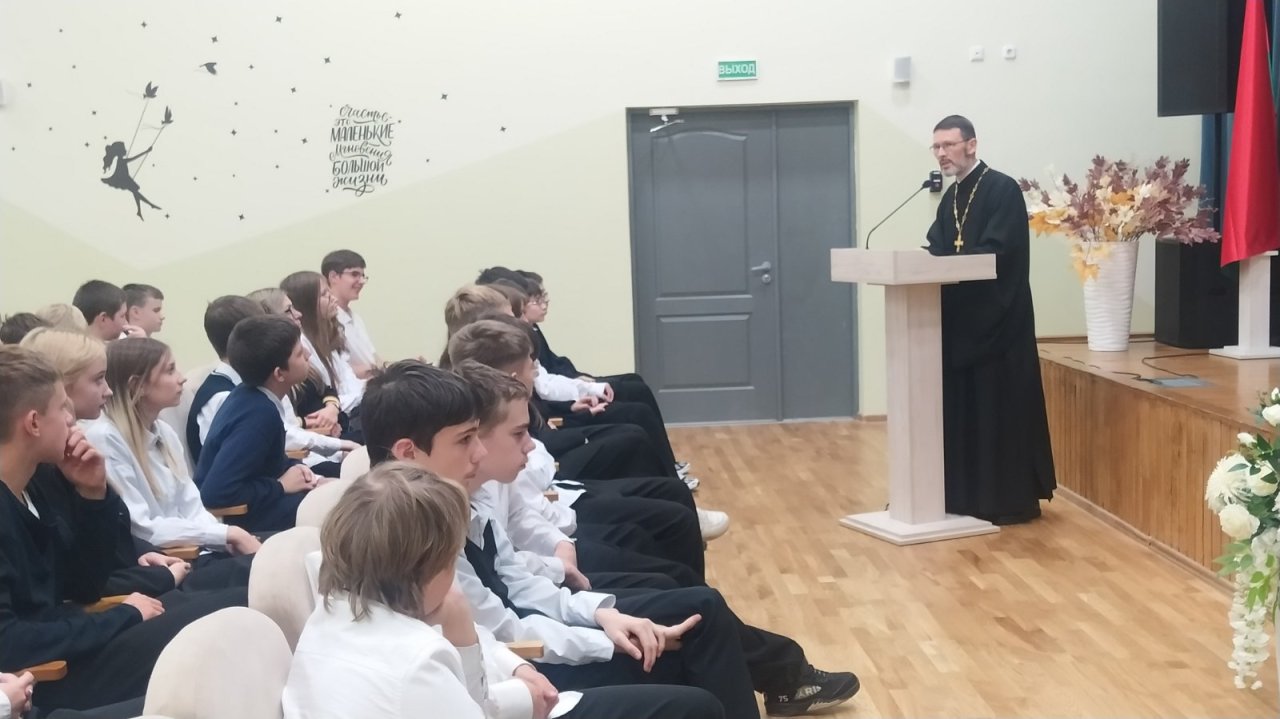 Священник встретился с восьмиклассниками и провел беседу на тему «Чистота души — чистота слова».