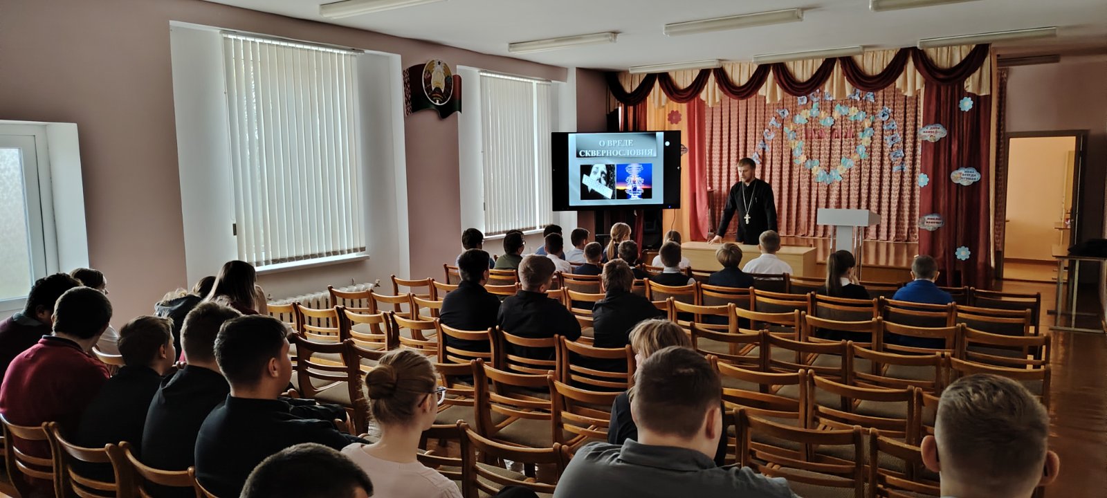 21 ноября иерей Виталий Шостыр посетил государственное учреждение образования «Елковская средняя школа». В ходе встречи учащимся была представлена презентация о вреде сквернословия.