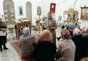 Настоятель храма иерей Сергий Хвощев подвел итоги строительно-хозяйственной работы за прошедший год, рассказал о выполненных проектах и запланированных работах по созданию алтарной преграды и эскизов витражей для оформления внутренних дверей храма.
