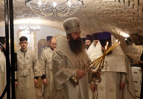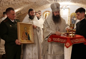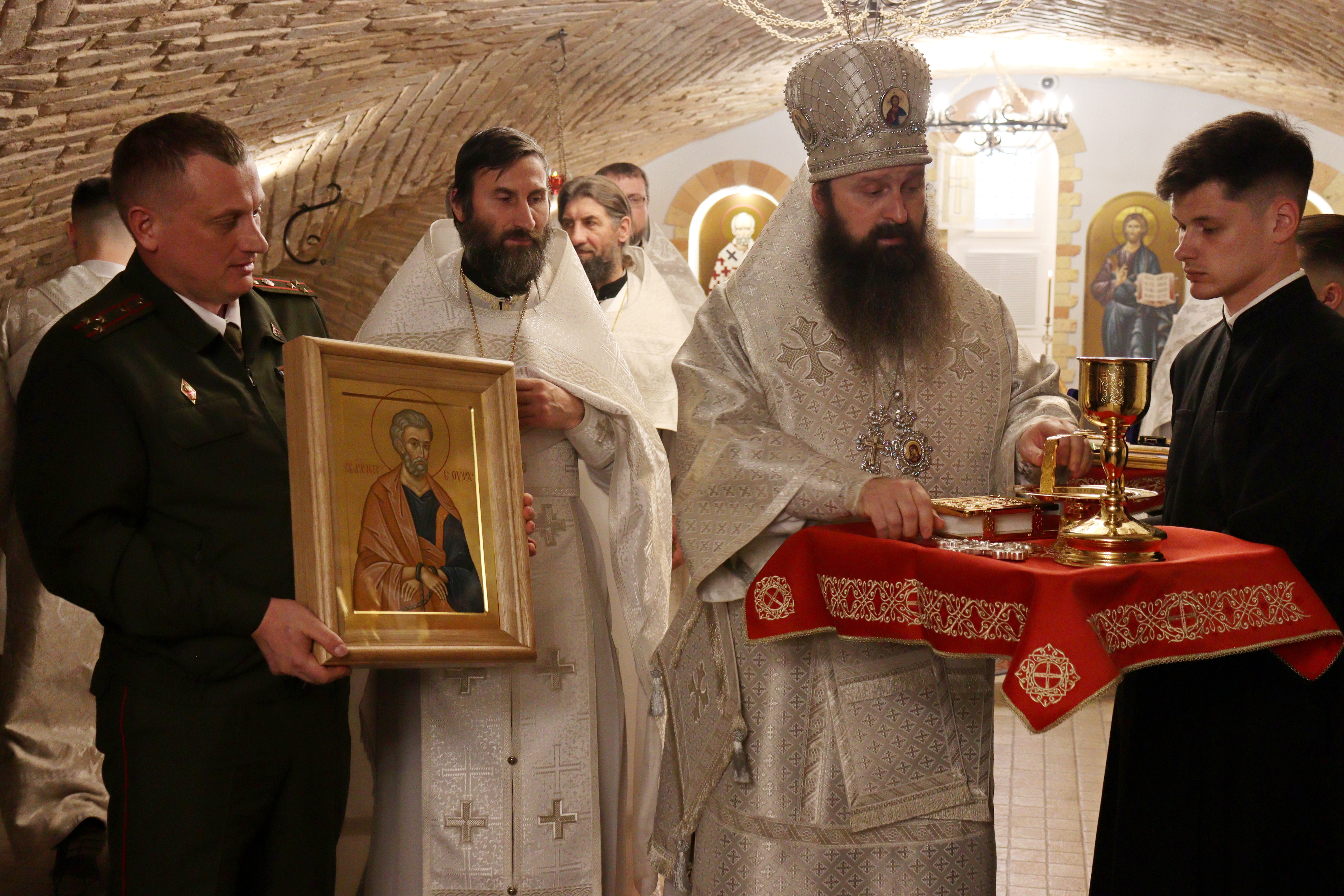 По окончании Божественной литургии архиепископ Антоний обратился к участникам богослужения с архипастырским словом. Владыка также поблагодарил тех, кто принимал участие в созидания храма и вручил церковные награды потрудившимся. На молитвенную память правящий архиерей передал в дар тюремному храму писаные иконы, облачения и богослужебную утварь.