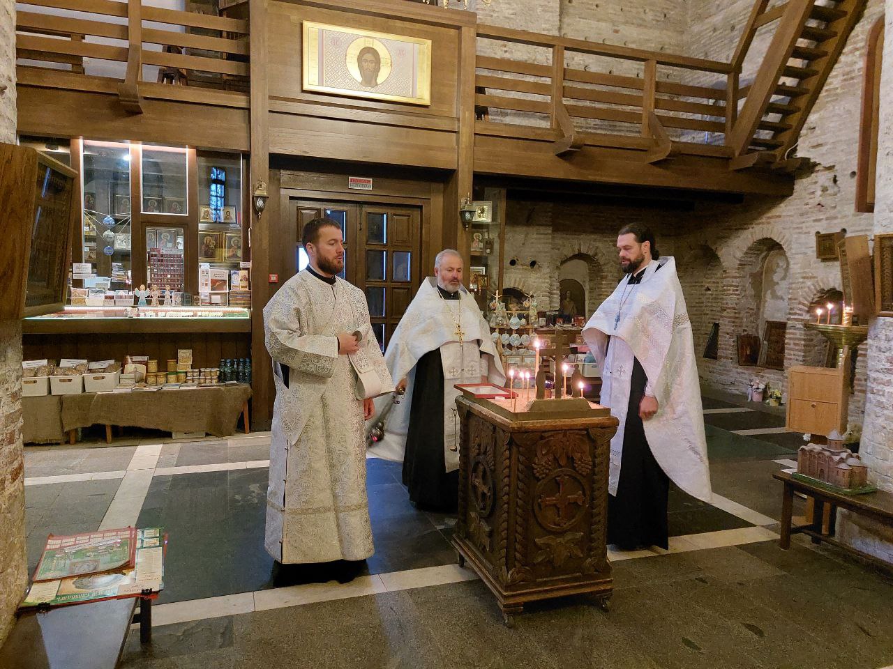 Заупокойное богослужение возглавил настоятель Коложского храма протоиерей Александр Болонников в сослужении клириков прихода. Во время богослужения были вознесены молитвы о упокоении приснопамятного епископа Иосифа, а также о всех настоятелях, наместниках и братии Коложского храма и монастыря.