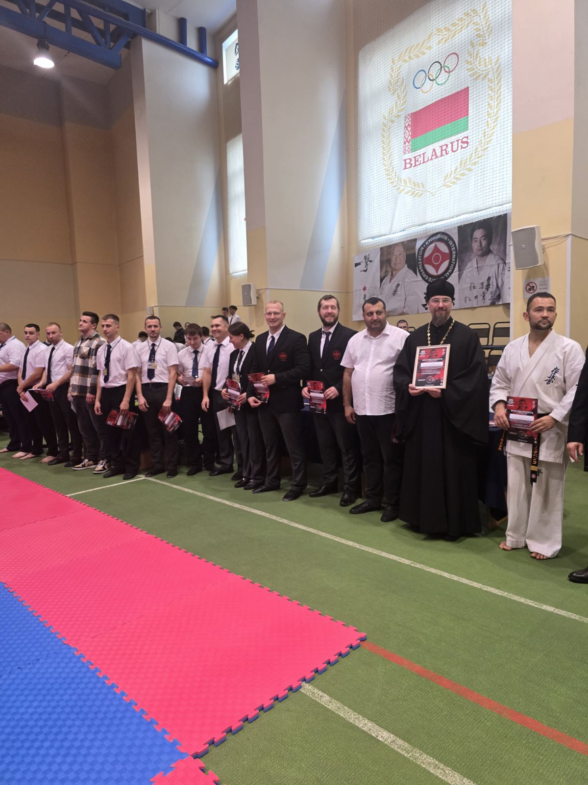 Церемония открытия началась с приветственного слова председателя правления Общественного объединения «Белорусская республиканская федерация киокушинкай» «ИКО» Василия Викторовича Максимова. Затем к участникам и гостям турнира обратился иерей Евгений Коваль, ключарь прихода храма Собора Белорусских святых — Архиерейского подворья г. Гродно.