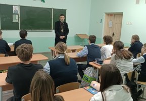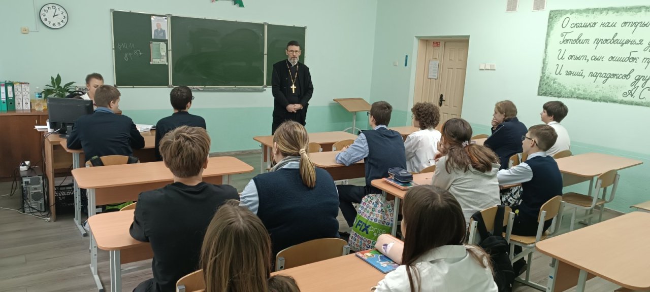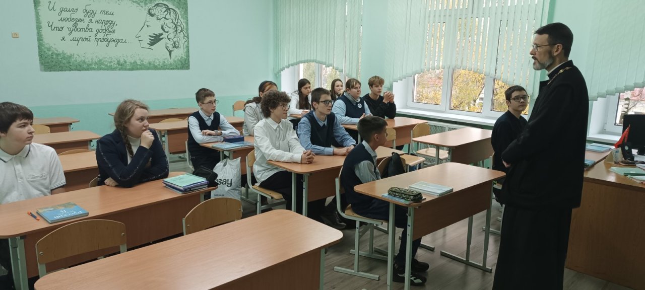 Для учеников 8 «А» класса состоялся урок духовности, на котором говорили о семье как малой Церкви, о ее иерархии, о духовных последствиях употребления ненормативной лексики и значении трезвения в жизни человека.