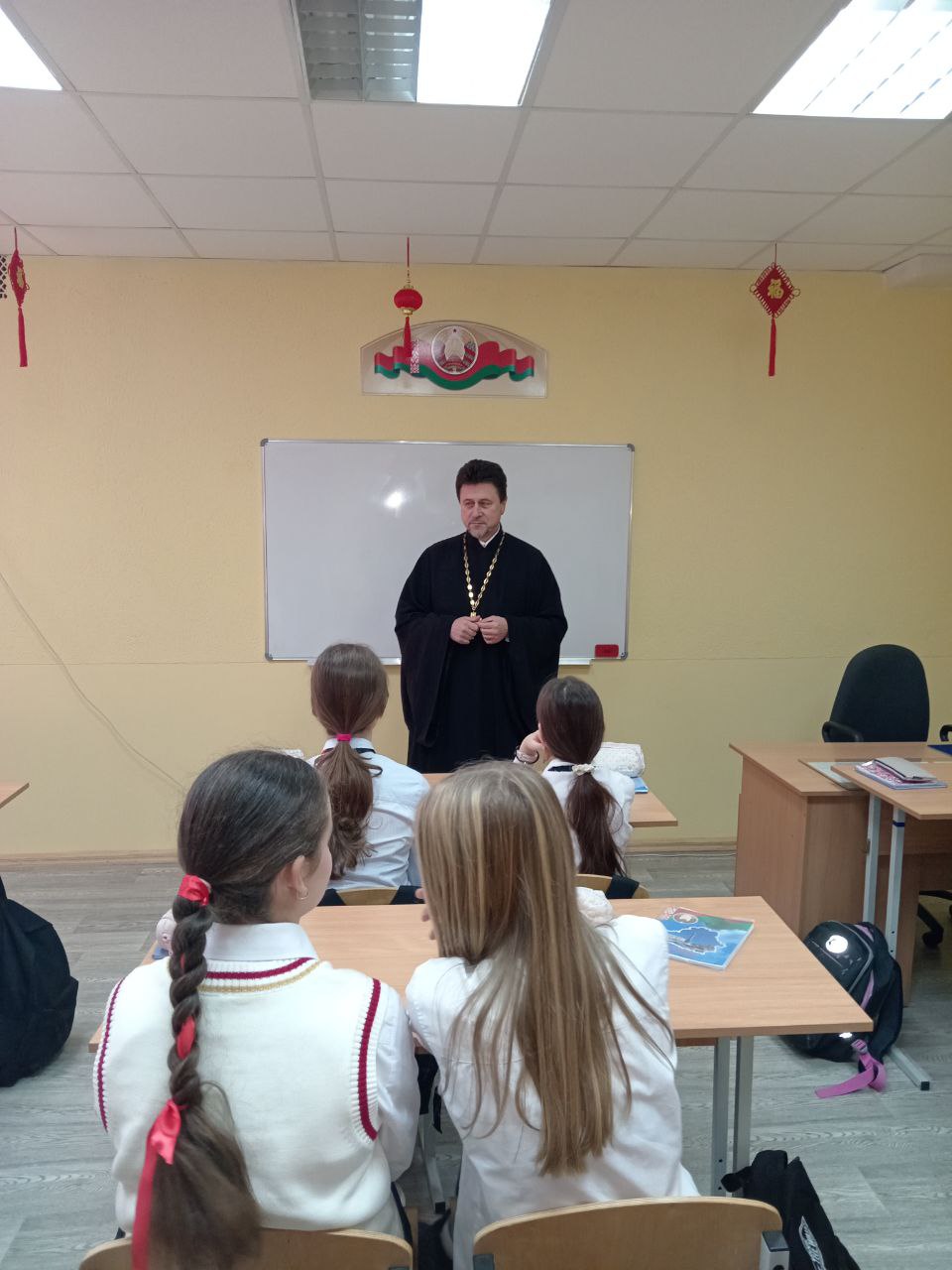 В рамках акции «Я и моя семья – без сквернословия» протоиерей Евгений Павельчук провел беседу в гимназии №6