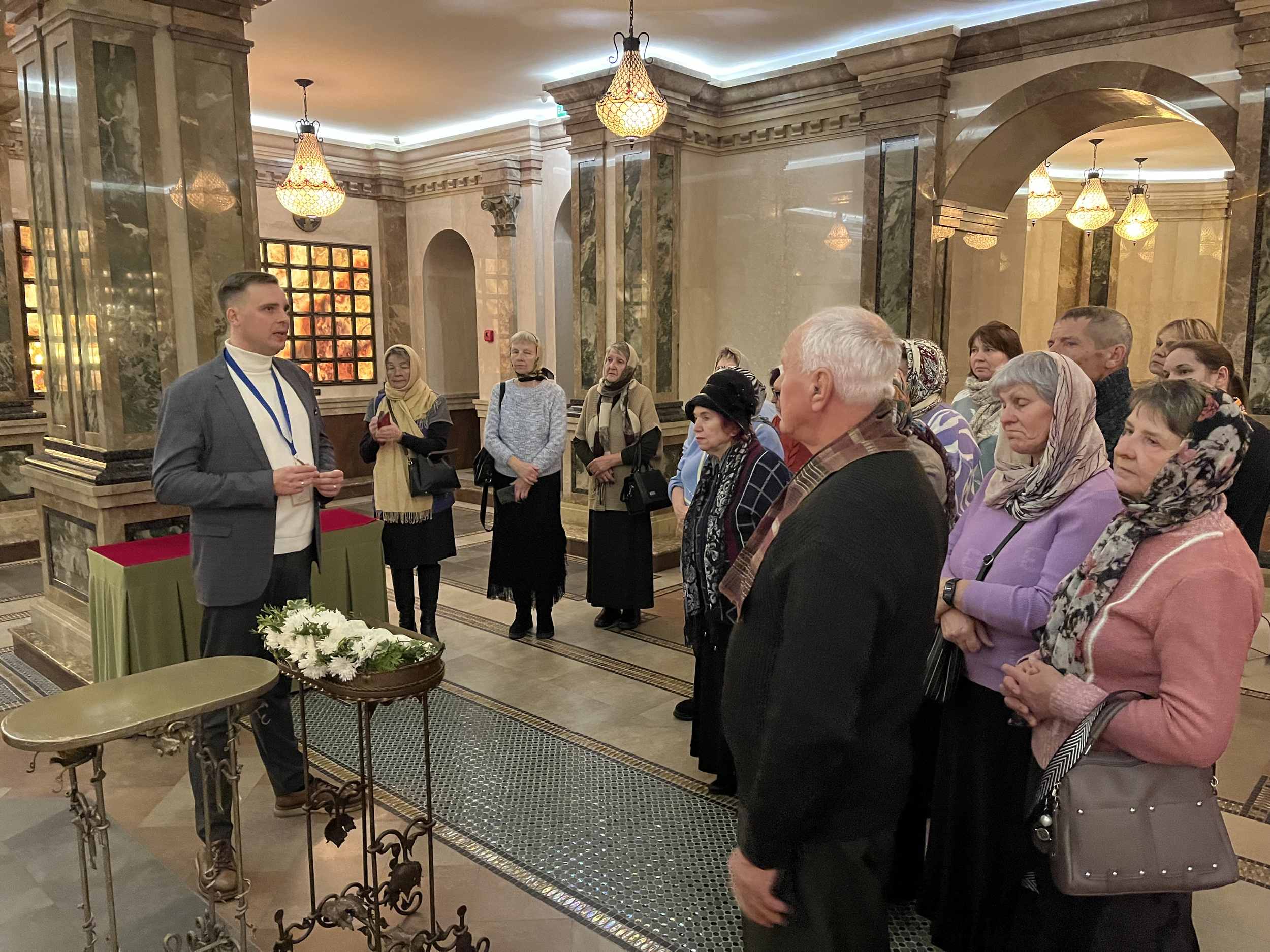 Затем участники поездки посетили Храм-Памятник в честь Всех святых г. Минска. Паломники побывали в крипте — подалтарной части храма, где покоятся останки воинов и находятся сосуды с землёй, собранной с мест боевой славы и братских могил. Также верующие посетили тематическую экспозицию «Музей памяти», посвящённую подвигу белорусского народа в войнах и локальных конфликтах. Кроме того, богомольцы осмотрели собор в честь Всех святых, придел в честь Усекновения главы Иоанна Предтечи и Троицкий храм.