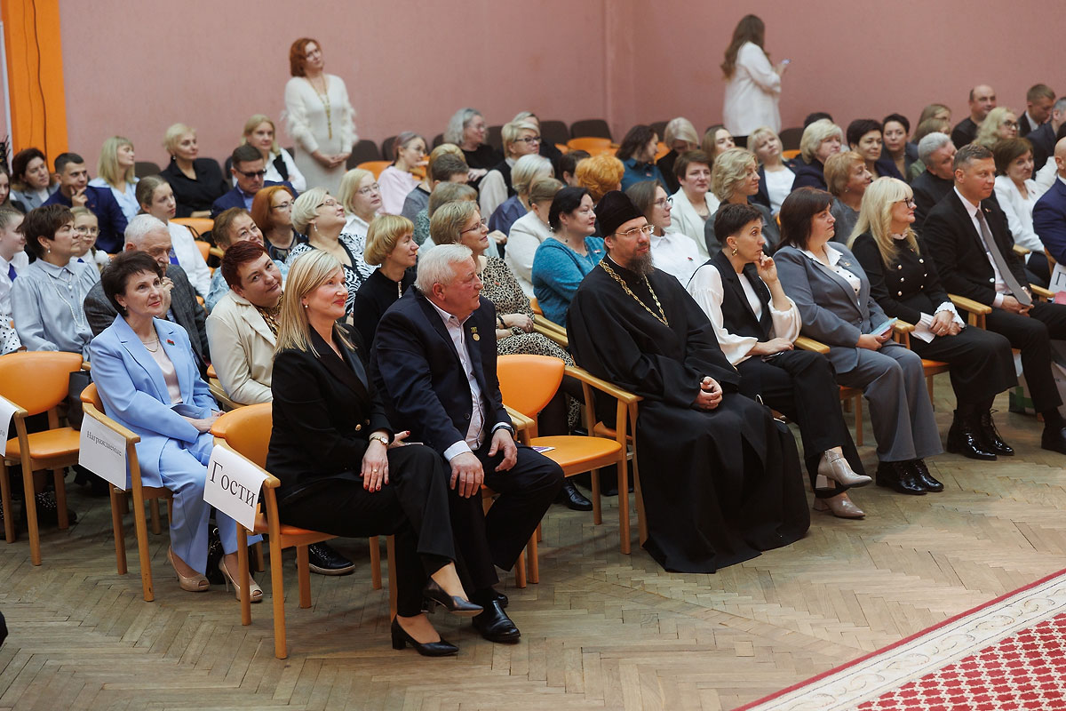 Обращаясь к педагогическому коллективу с приветственным словом, священник поздравил присутствующих с юбилеем учреждения, поблагодарил учителей за многолетний самоотверженный труд, терпение и мудрость, отметив, что педагогическое служение требует огромных душевных сил, тепла и любви, чтобы «посеянное семя знаний и добра принесло добрый плод в сердцах учеников».