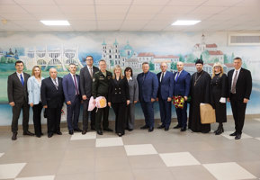 В завершение встречи священник передал в дар гимназии и ее директору изображение Архиерейского подворья храма Собора Белорусских святых как символ духовной связи и доброго взаимодействия между Церковью и образовательным сообществом города.