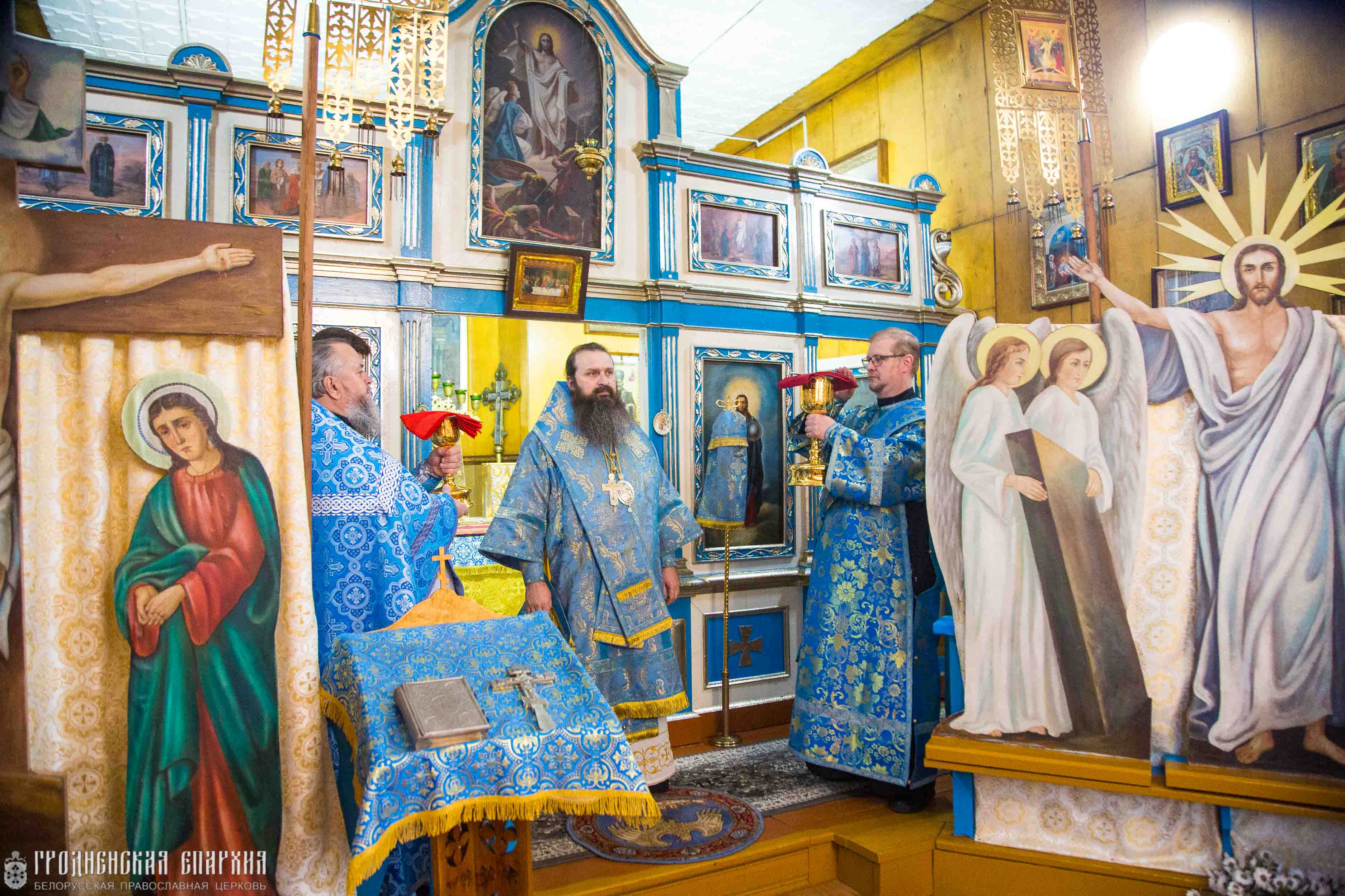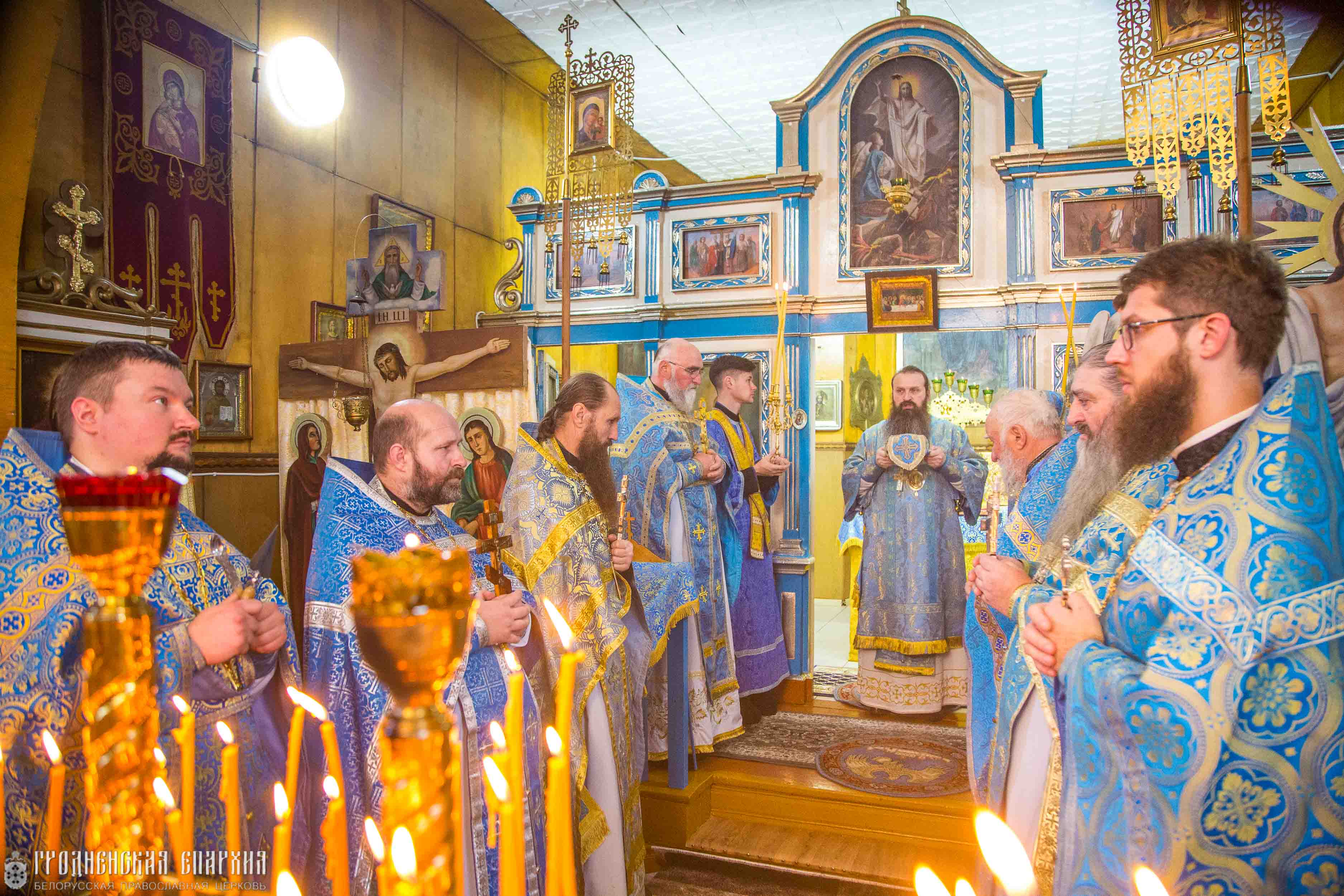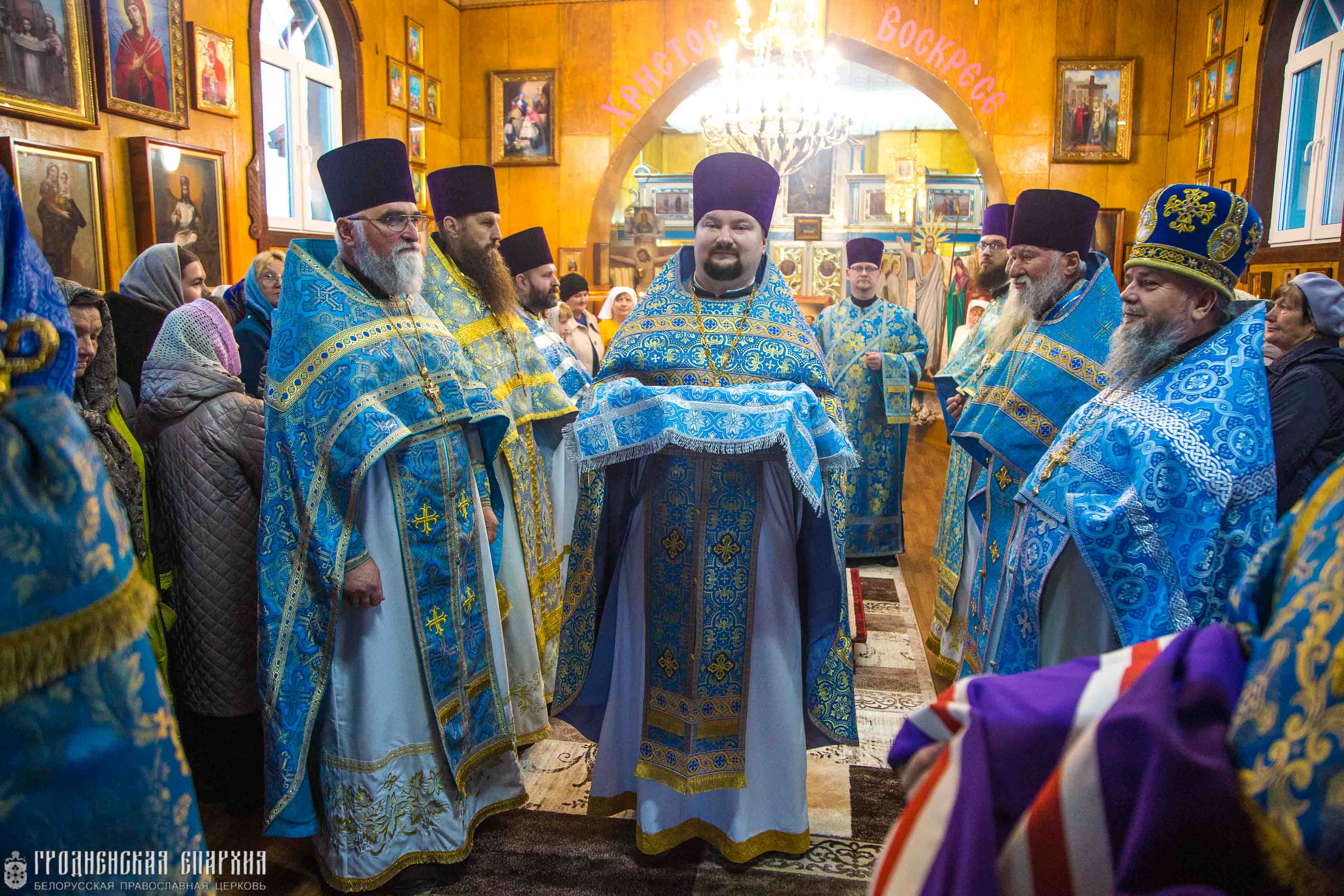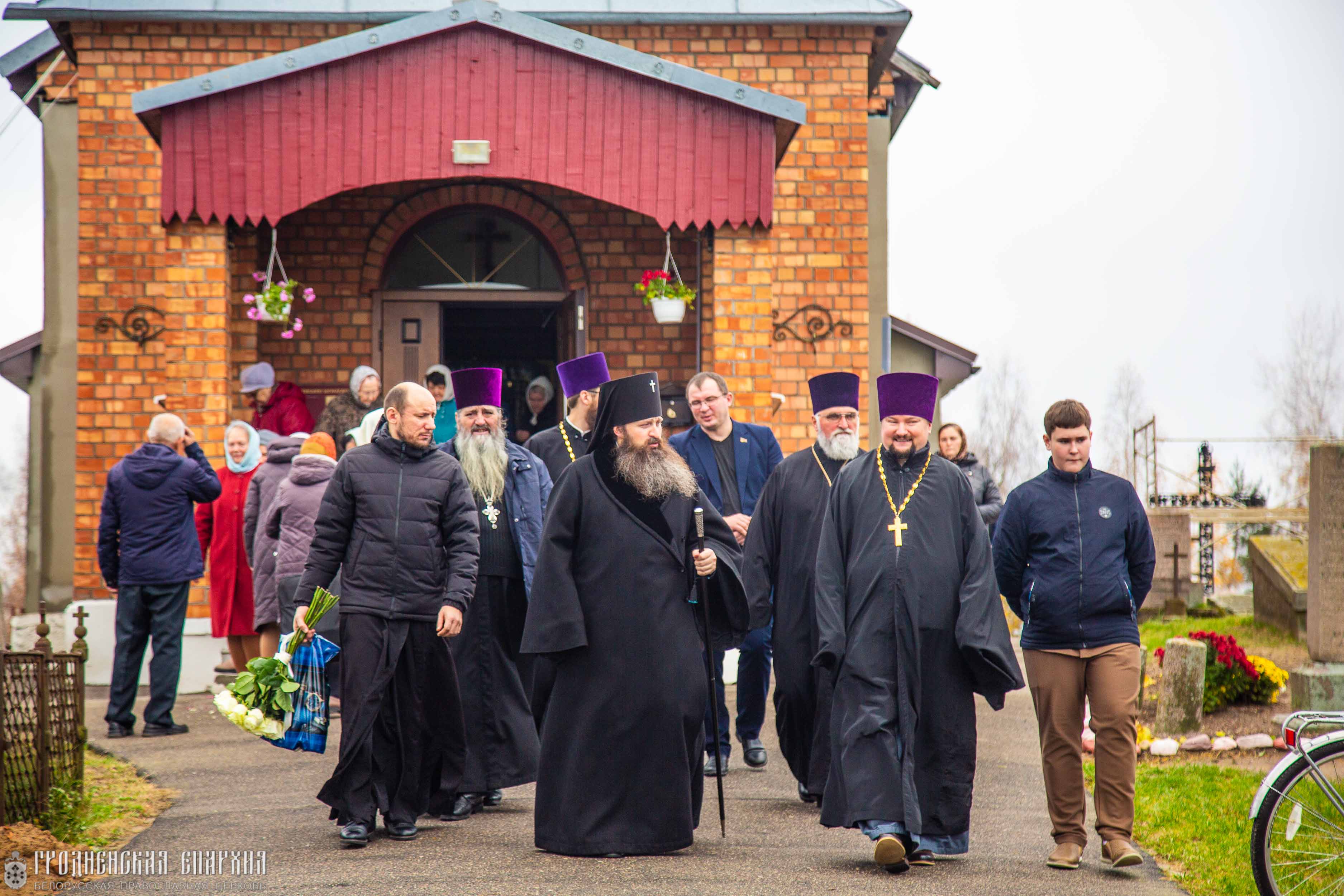Его Высокопреосвященству сослужили: протоиерей Сергий Шелест, благочинный Свислочского церковного округа; протоиерей Николай Гмир, настоятель прихода храма великомученика Димитрия Солунского агрогородка Малая Берестовица Берестовицкого района; протоиерей Феодор Шелест, настоятель прихода храма Святой Живоначальной Троицы городского поселка Порозово Свислочского района; протоиерей Николай Семашкевич, настоятель прихода храма святых апостолов Петра и Павла деревни Горностаевичи Свислочского района; иерей Петр Ровнейко, настоятель прихода храма Успения Пресвятой Богородицы агрогородка Доброволя Свислочского района; иерей Анатолий Коляда настоятель прихода храма святого Архангела Михаила агрогородка Новый Двор Свислочского района; иерей Дионисий Черняев, настоятель прихода храма Воздвижения Креста Господня; иерей Кирилл Кубрак, настоятель прихода храма Рождества Пресвятой Богородицы города Свислочь.