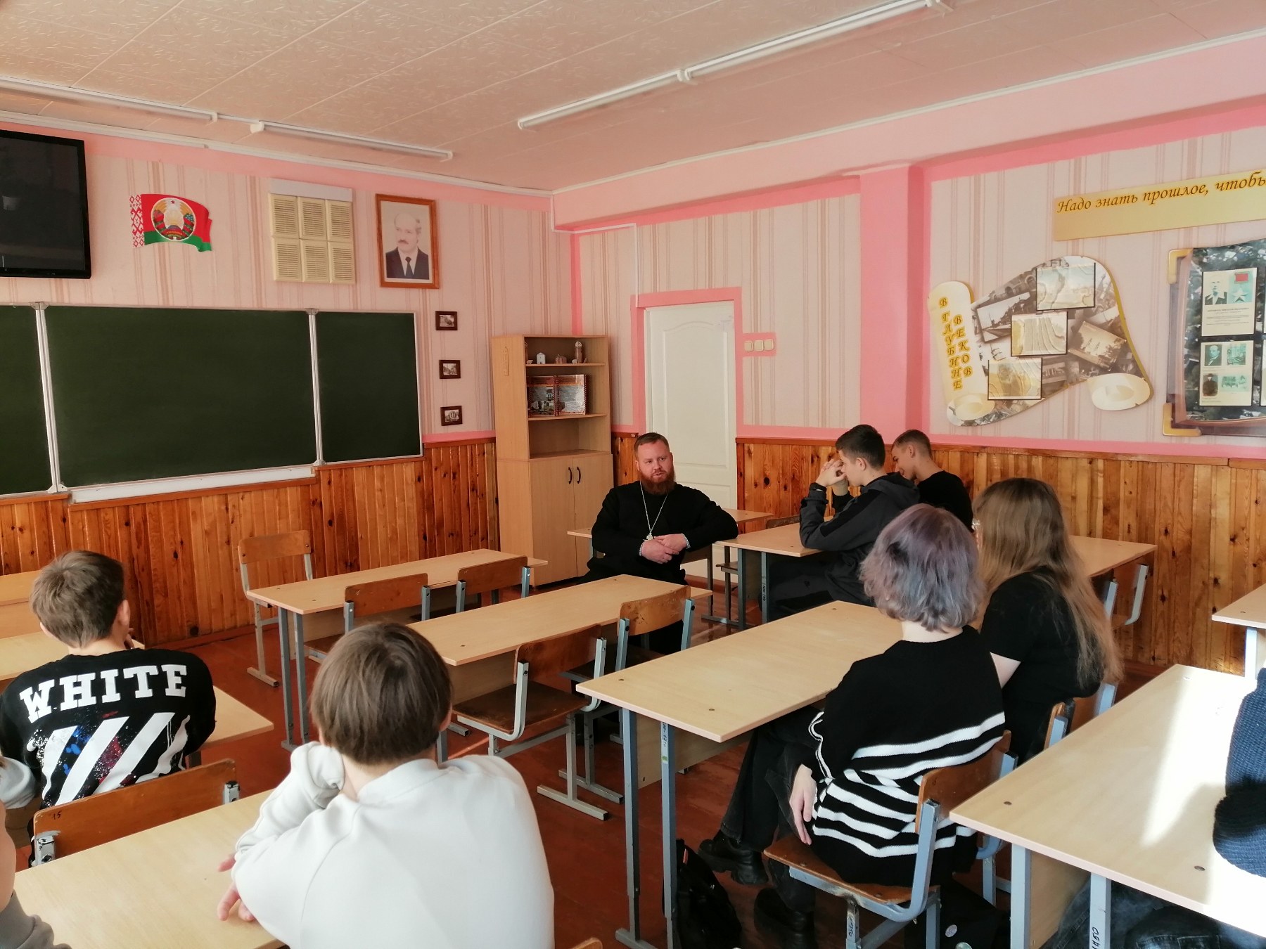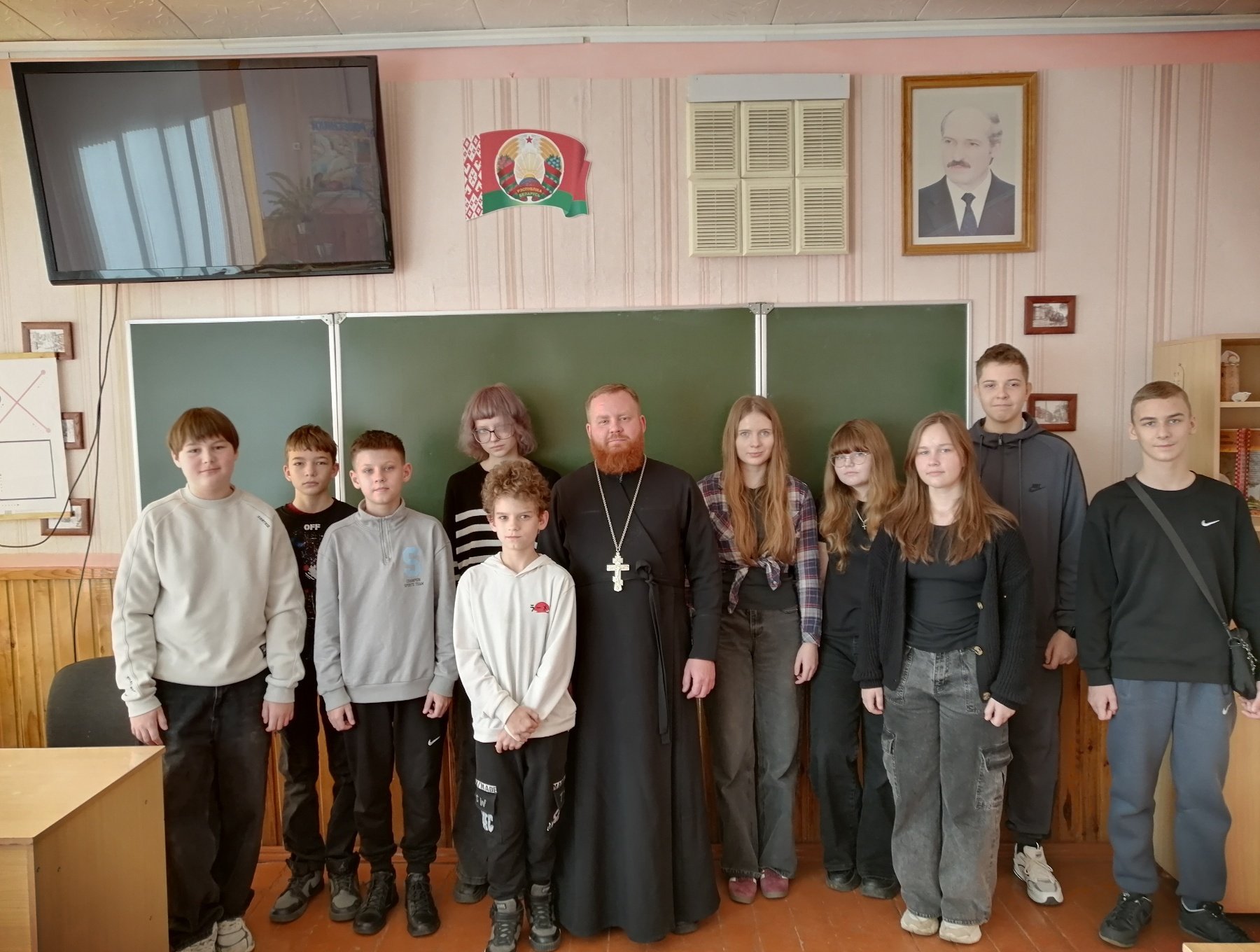 1 ноября клирик кафедрального собора святых апостолов Петра и Павла г. Волковыска иерей Антоний Федосеев провел беседу с учащимися 7 класса гимназии №2 г. Волковыска на тему основ христианской нравственности.