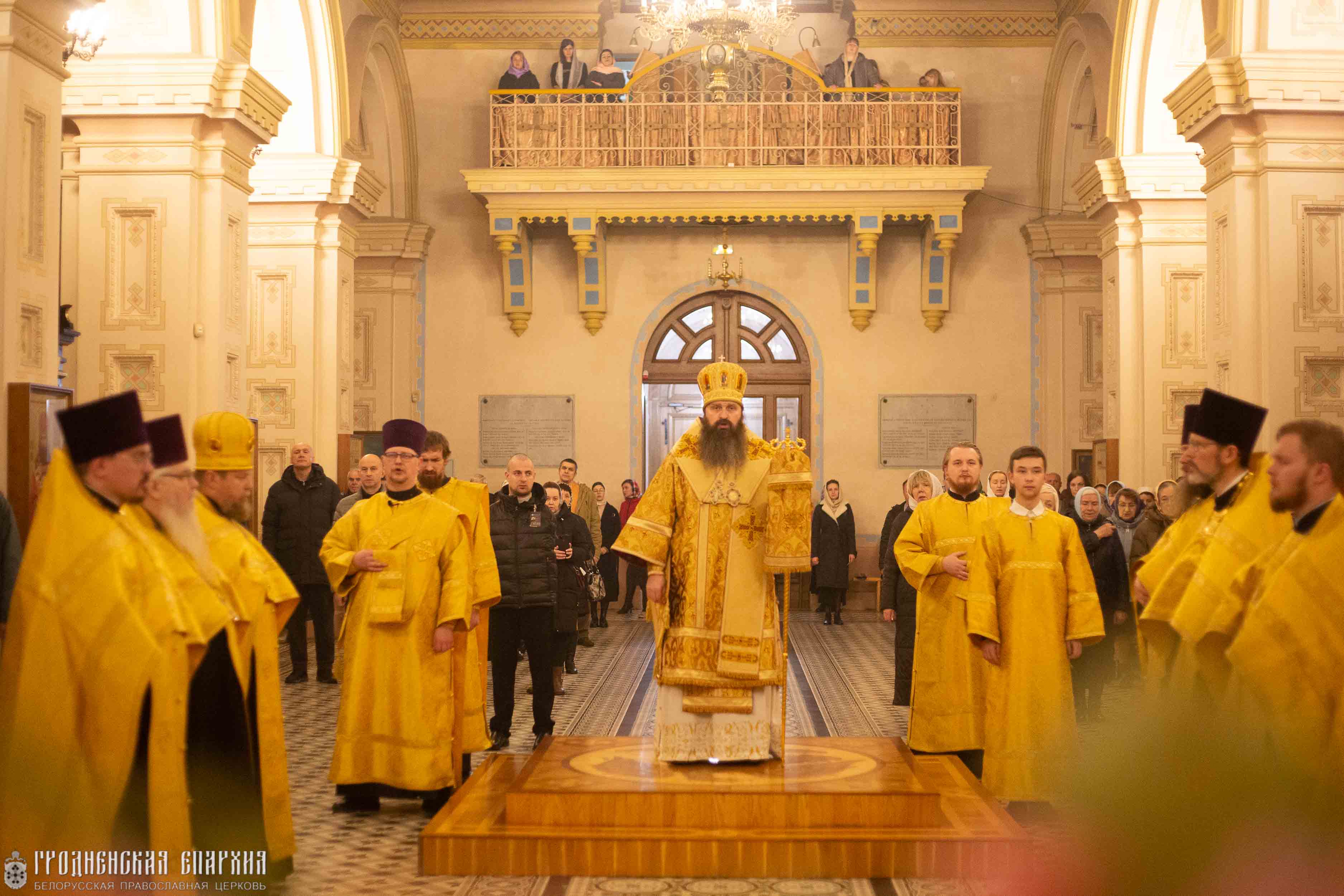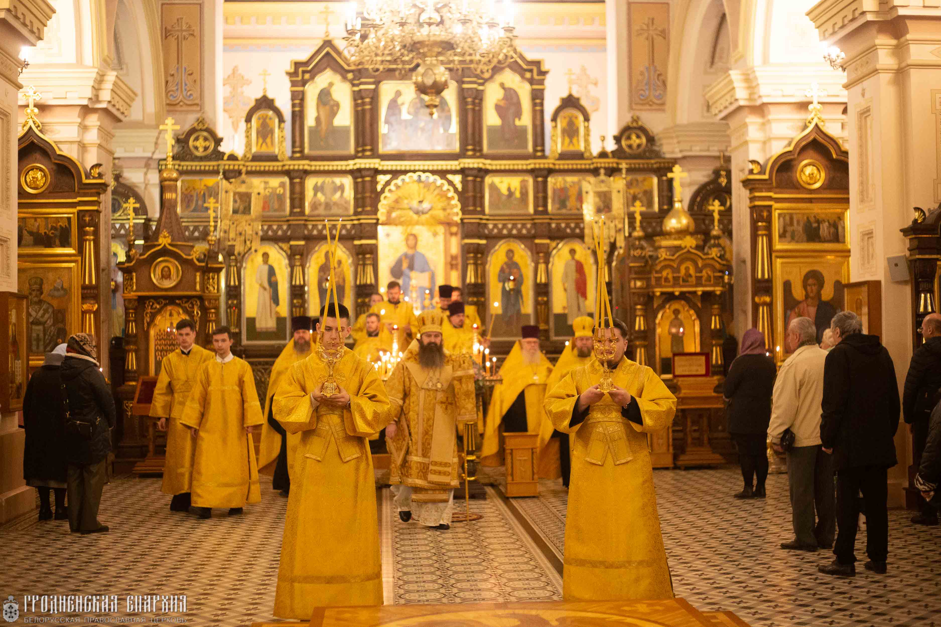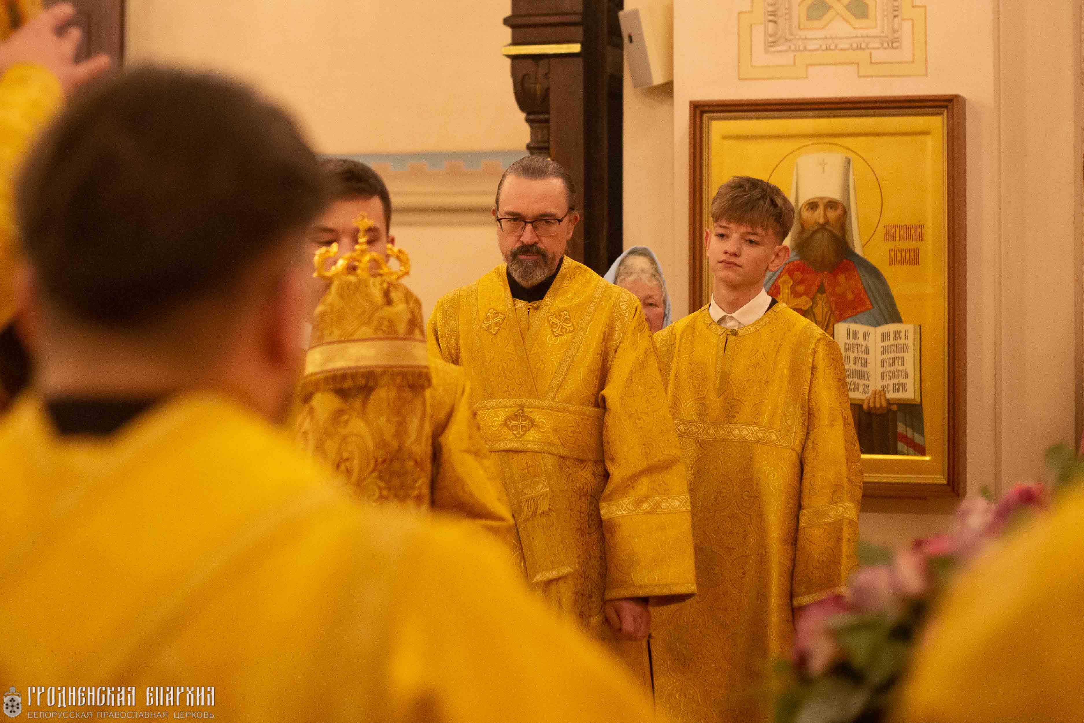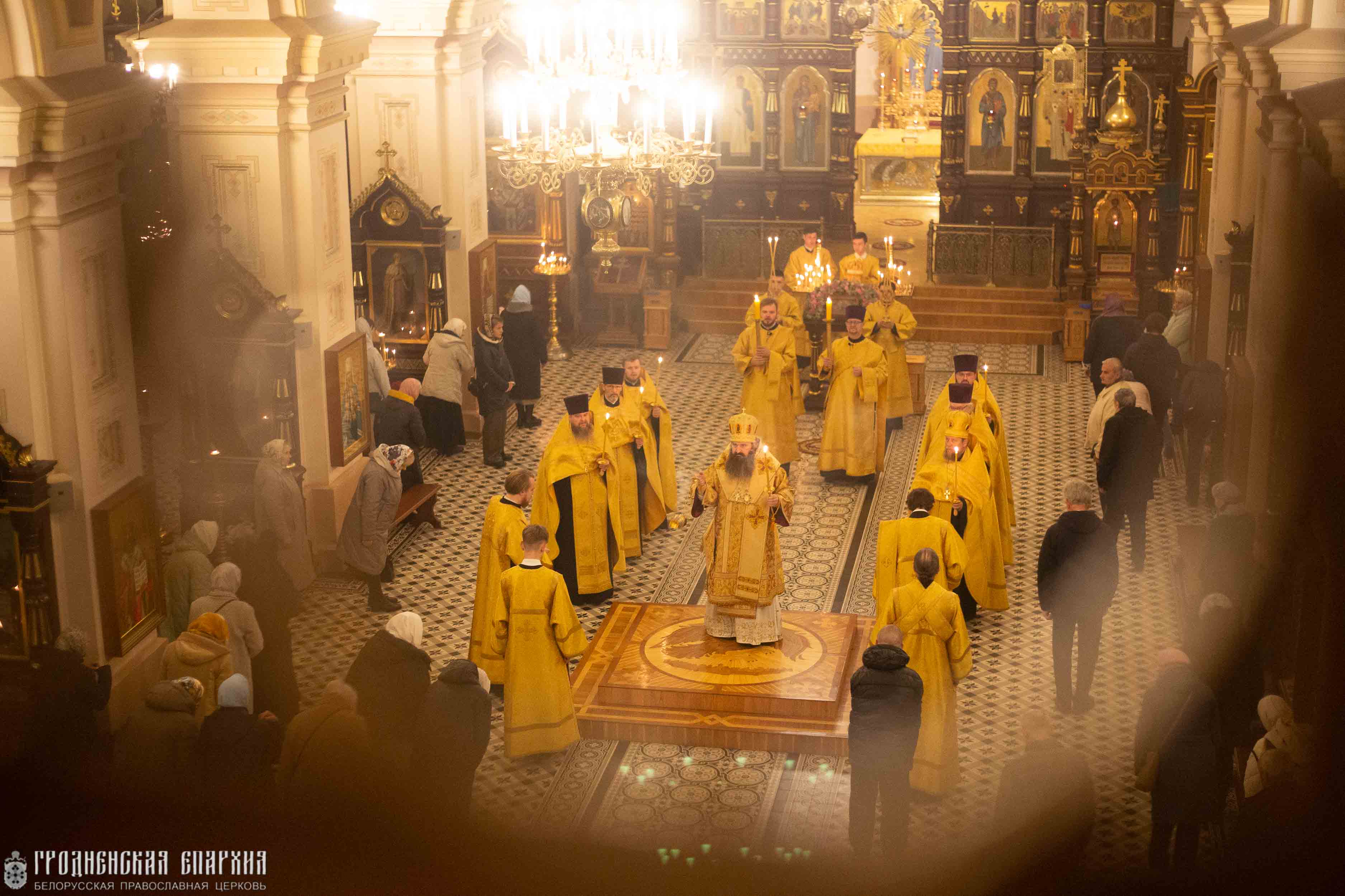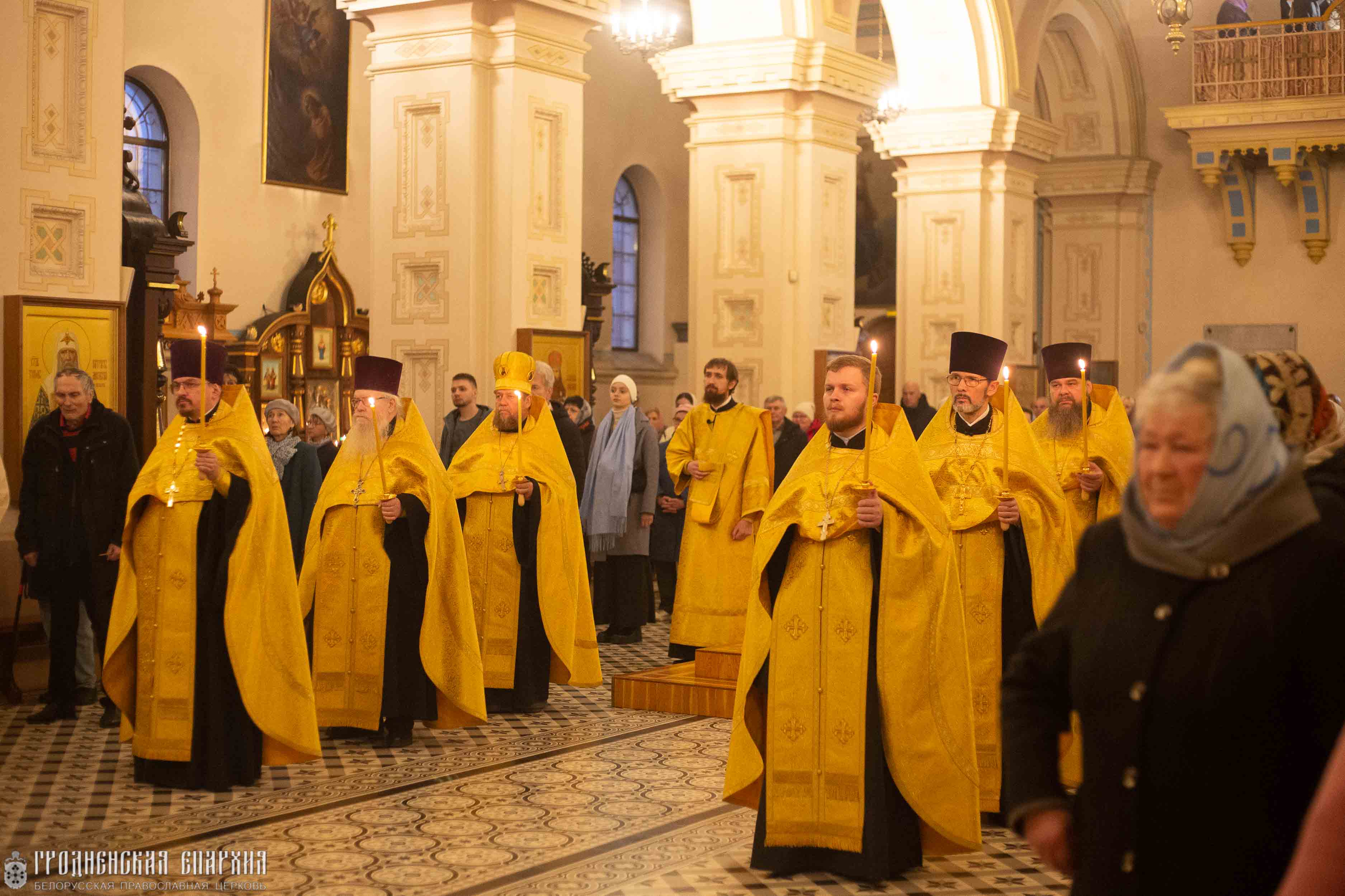 Его Высокопреосвященству сослужили: протоиерей Григорий Беляцкий, настоятель кафедрального собора Покрова Пресвятой Богородицы; митрофорный протоиерей Александр Ноздрин; протоиерей Андрей Бондаренко, духовник Гродненской епархии; клирики кафедрального собора.
