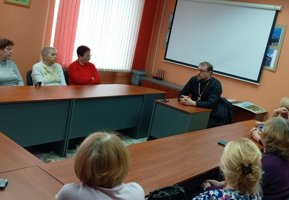 4 ноября в день памяти иконы Божией Матери, именуемой «Казанская», в центре дневного пребывания граждан пожилого возраста Ленинского района г. Гродно состоялась очередная встреча с руководителем отдела социального служения и благотворительности Гродненской епархии, клириком кафедрального собора Покрова Пресвятой Богородицы иереем Александром Гуком.