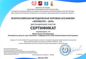 По итогам тестирования методической хоровой ассамблеи «Хорэкспо-2025» всем участникам были вручены сертификаты об окончании курса.