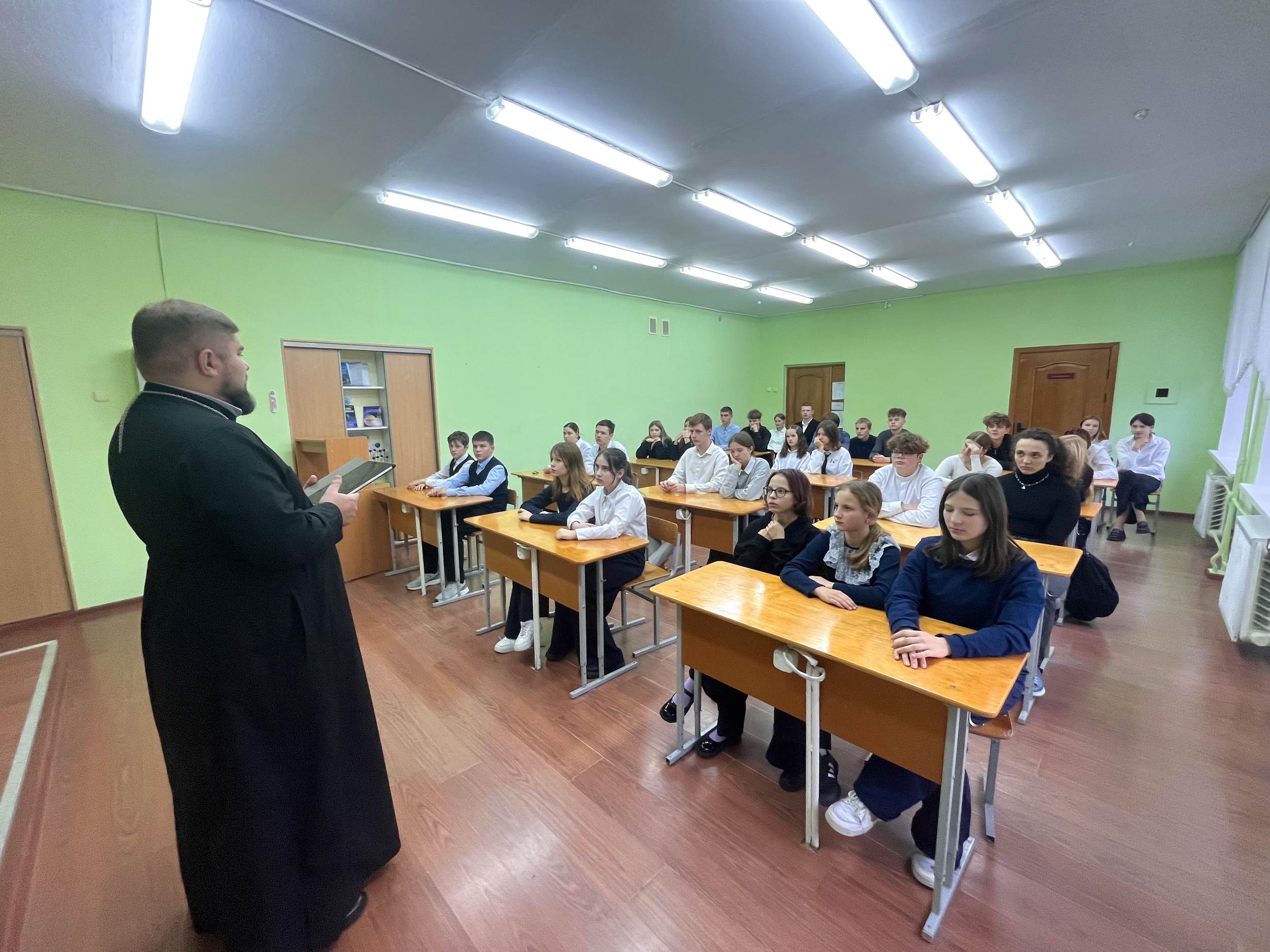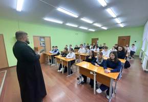 В начале встречи священнослужитель рассказал о духовных корнях насилия, которые кроются в ненависти и внутренней злобе человека. Он напомнил учащимся слова Священного Писания: «Кто говорит, что он во свете, а ненавидит брата своего, тот ещё во тьме доныне» (1 Ин. 2:9).