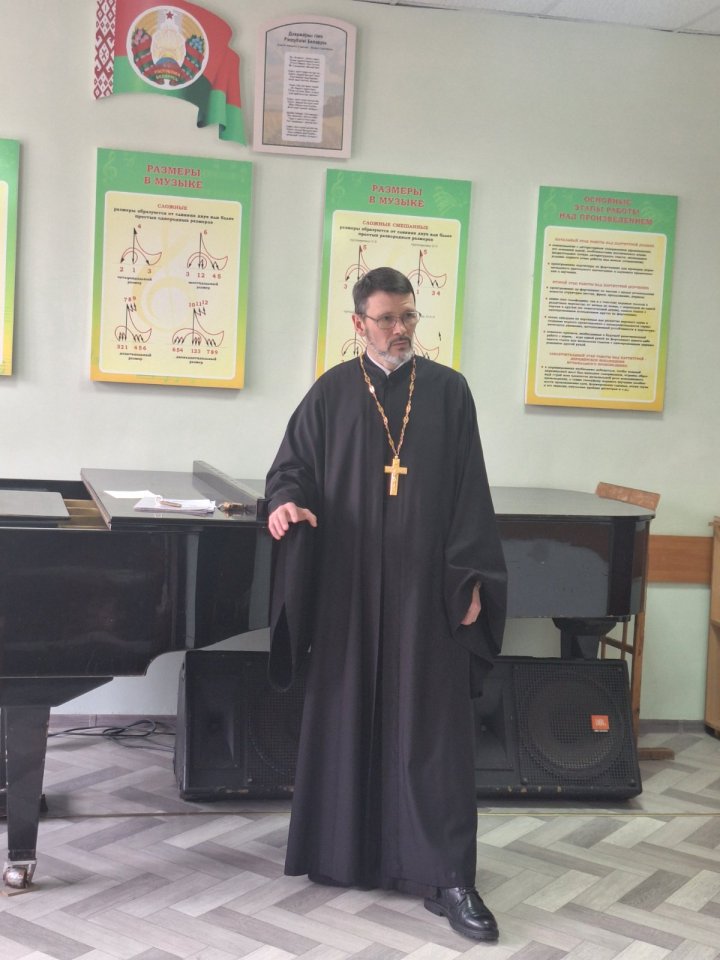 11 ноября клирик кафедрального собора Покрова Пресвятой Богородицы г. Гродно, духовник православного общества трезвости «Елисаветинское» иерей Михаил Перец с пастырским визитом посетил Гродненский государственный колледж искусств.