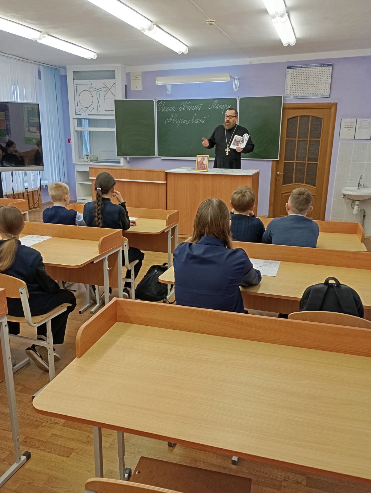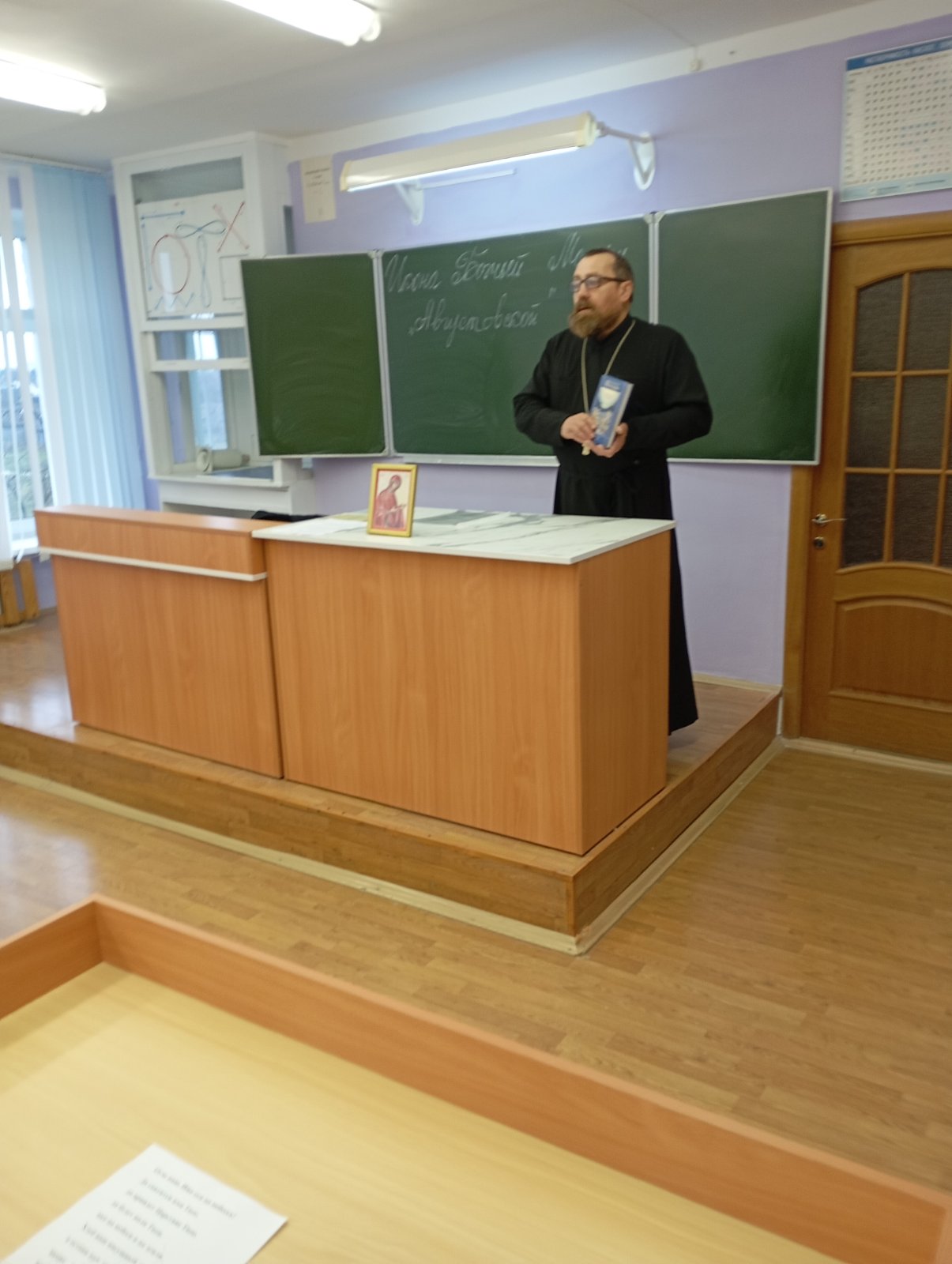 14 ноября настоятель прихода храма Рождества Пресвятой Богородицы д. Мурованка Щучинского района иерей Олег Засим посетил ГУО «Скрибовская средняя школа» и провёл беседу с учащимися 4-6-х классов на тему «Икона Божьей Матери «Августовская».