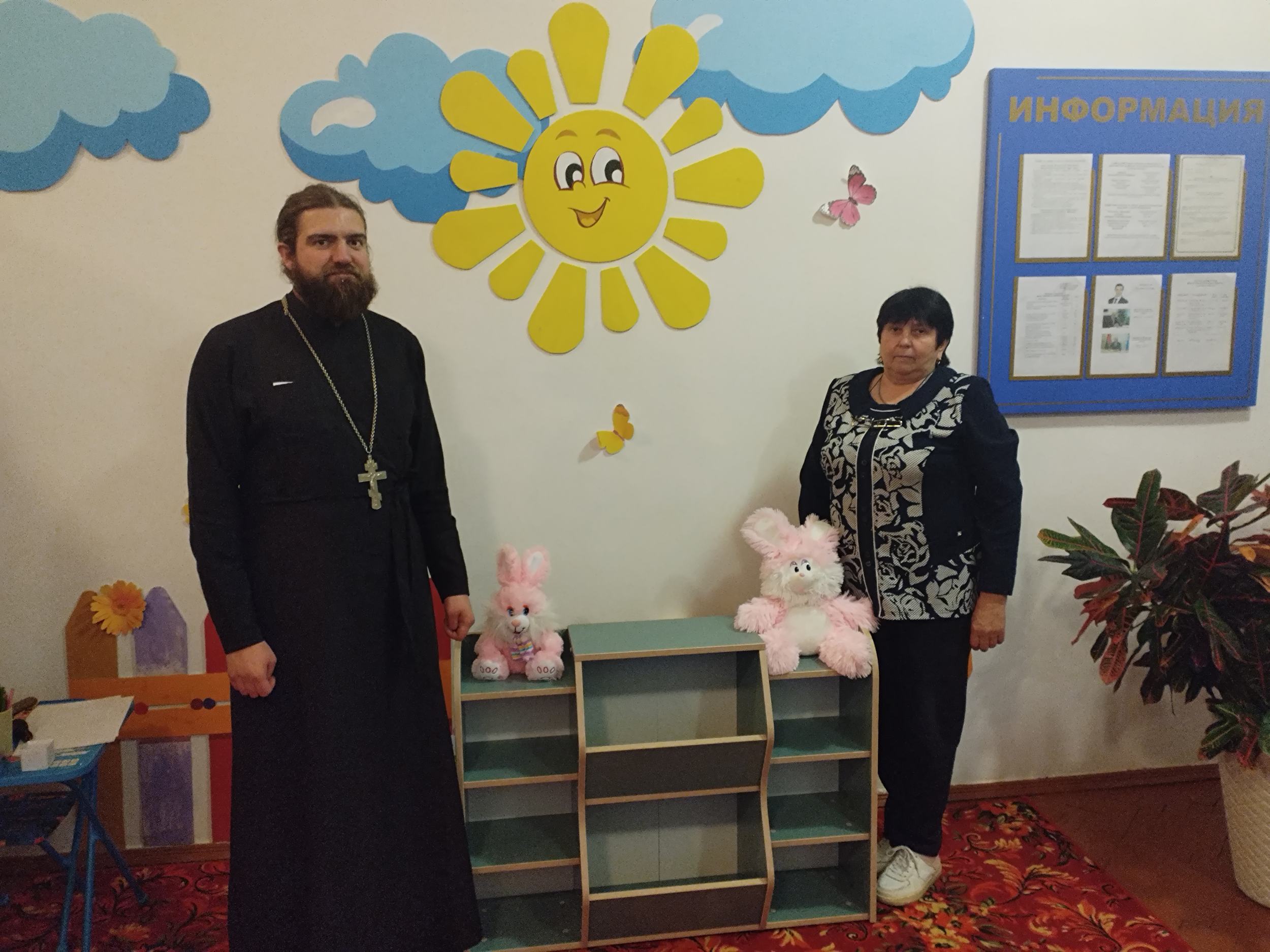 «125 добрых дел»: иерей Димитрий Голамбовский передал в Раковичскую библиотеку стенд