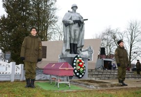 Во время перезахоронения была отслужена лития, после чего могила была окроплена святой водой. Обращаясь к собравшимся, протоиерей Арсений подчеркнул, что «воины отдали свою жизнь для того, чтобы сегодня мы имели мирное небо и могли просить у Господа милости и прощения грехов».