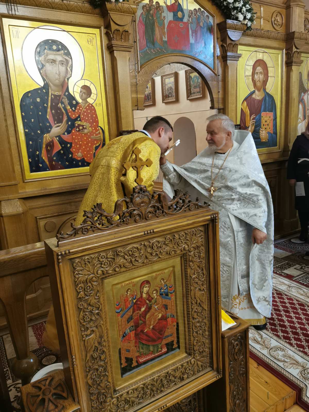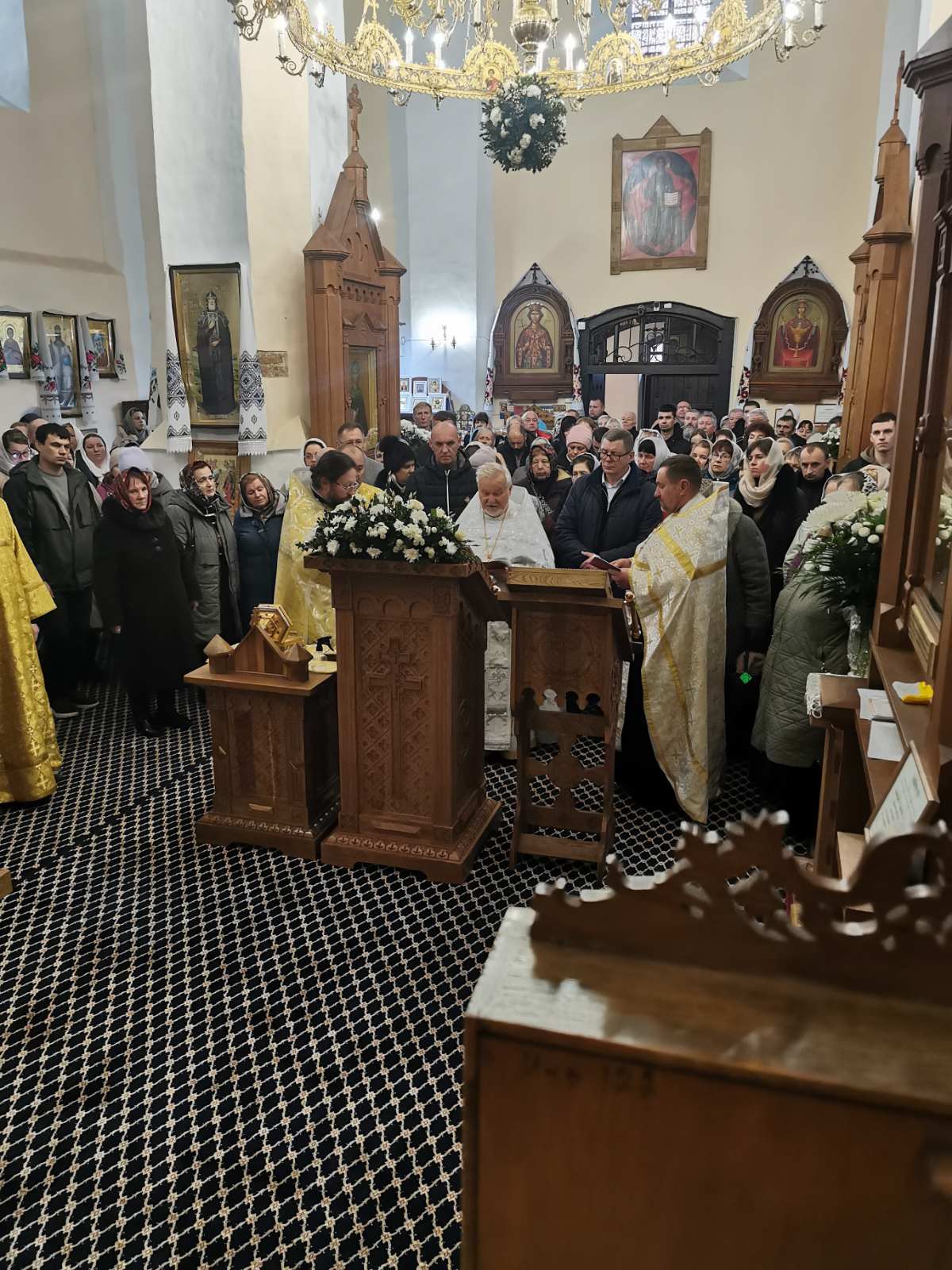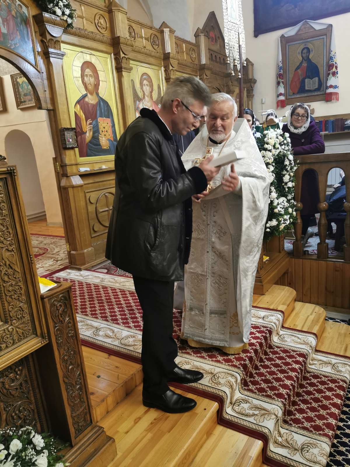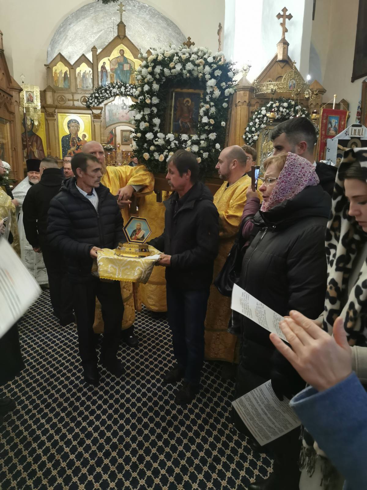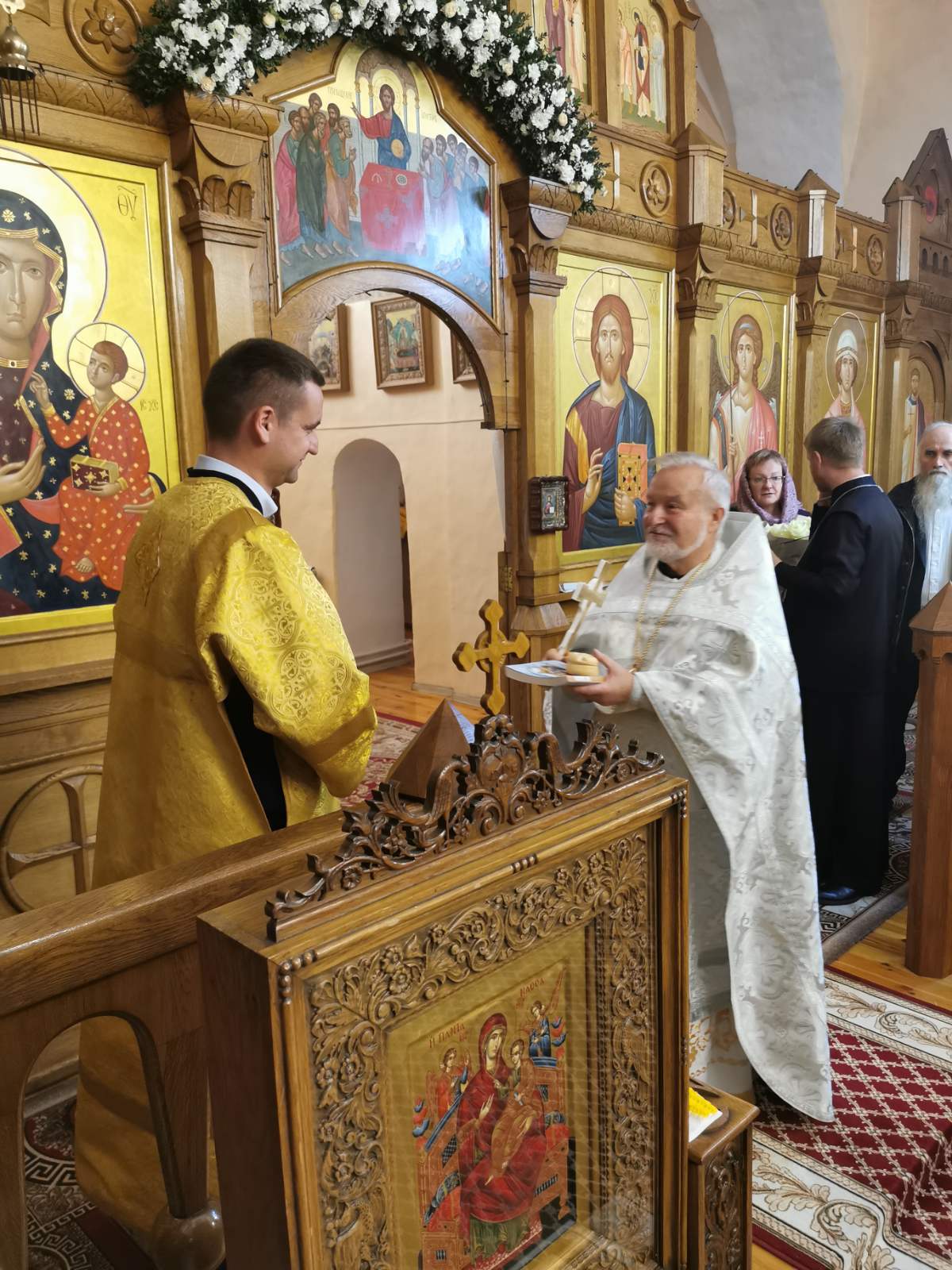 После проповеди настоятель приветствовал почётных гостей: советника Государственного секретаря Совета Безопасности Республики Беларусь генерал-майора Сергея Куприка; председателя Зельвенского районного исполнительного комитета Юрия Владимировича Костоломова; председателя суда Слонимского района Вадима Игоревича Дубровского.