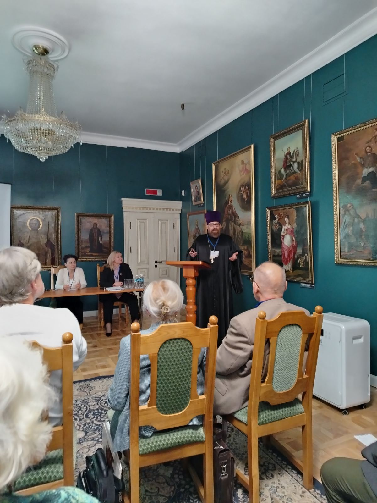 Протоиерей Александр Болонников приветствовал участников семинара от имени Высокопреосвященнейшего Антония, архиепископа Гродненского и Волковысского и передал в дар музею комплект книг с исследованиями древнейшего православного храма Гродненщины – Коложской церкви, а также почтовый блок с художественной маркой с изображением Коложской иконы Божией Матери. Уникальная марка с дополненной реальностью в виде 3D-макета Борисо-Глебского храма и колокольным звоном была признана лучшей почтовой маркой Республики Беларусь 2021 года.