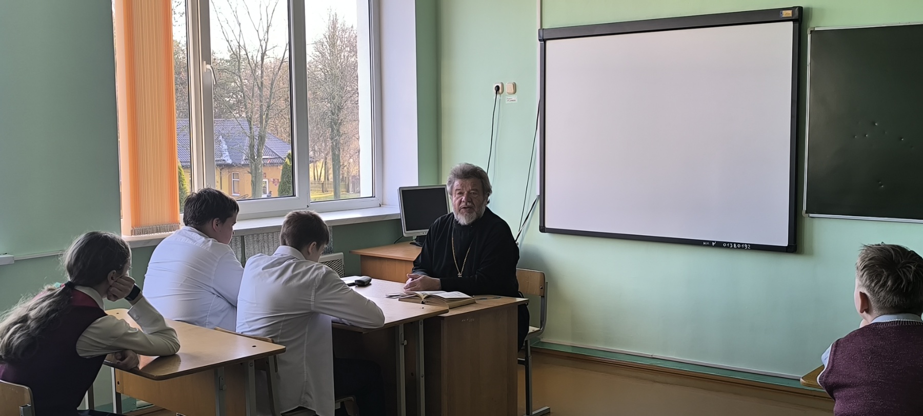 В современном мире, насыщенном информацией и множеством внешних воздействий, особую значимость приобретает духовно-нравственное воспитание подрастающего поколения. В этой связи в школе состоялась встреча с настоятелем храма Рождества Пресвятой Богородицы агрогородка Гудевичи протоиереем Николаем Сенем.