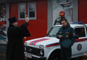 Протоиерей Николай Лабынько совершил молитву, освятил новые автомобили и пожелал сотрудникам МЧС Божией помощи в несении ответственного служения.