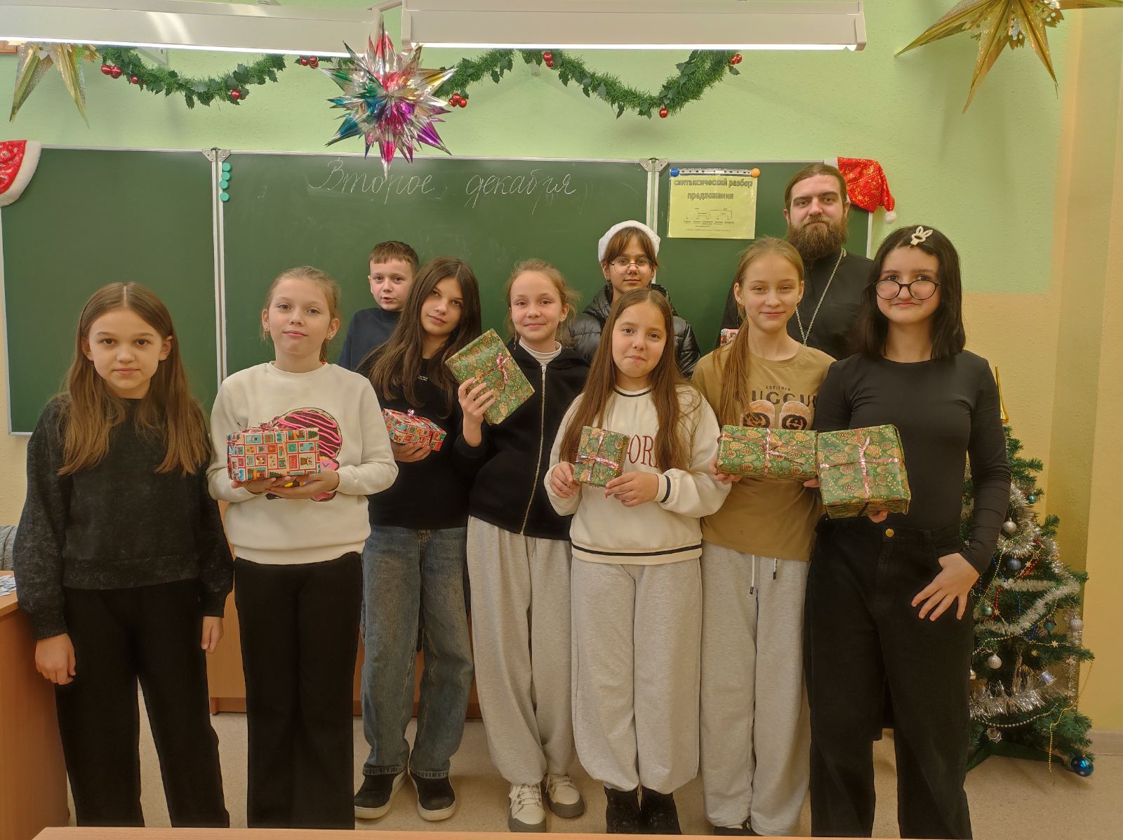 В рамках факультатива «Основы духовно-нравственной культуры и патриотизма» священнослужитель провел беседу с учащимися на тему «Красота святых». Отец Димитрий рассказал школьникам об отличительных чертах святости, подчеркнул важность стремления человека к духовному совершенству, а также напомнил о начале Рождественского поста, его смысле и значении в жизни православного христианина.