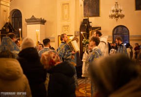 Его Высокопреосвященству сослужили: протоиерей Григорий Беляцкий, настоятель кафедрального собора Покрова Пресвятой Богородицы; иерей Александр Гук, руководитель отдела по церковной благотворительности и социальному служению; клирики кафедрального собора.