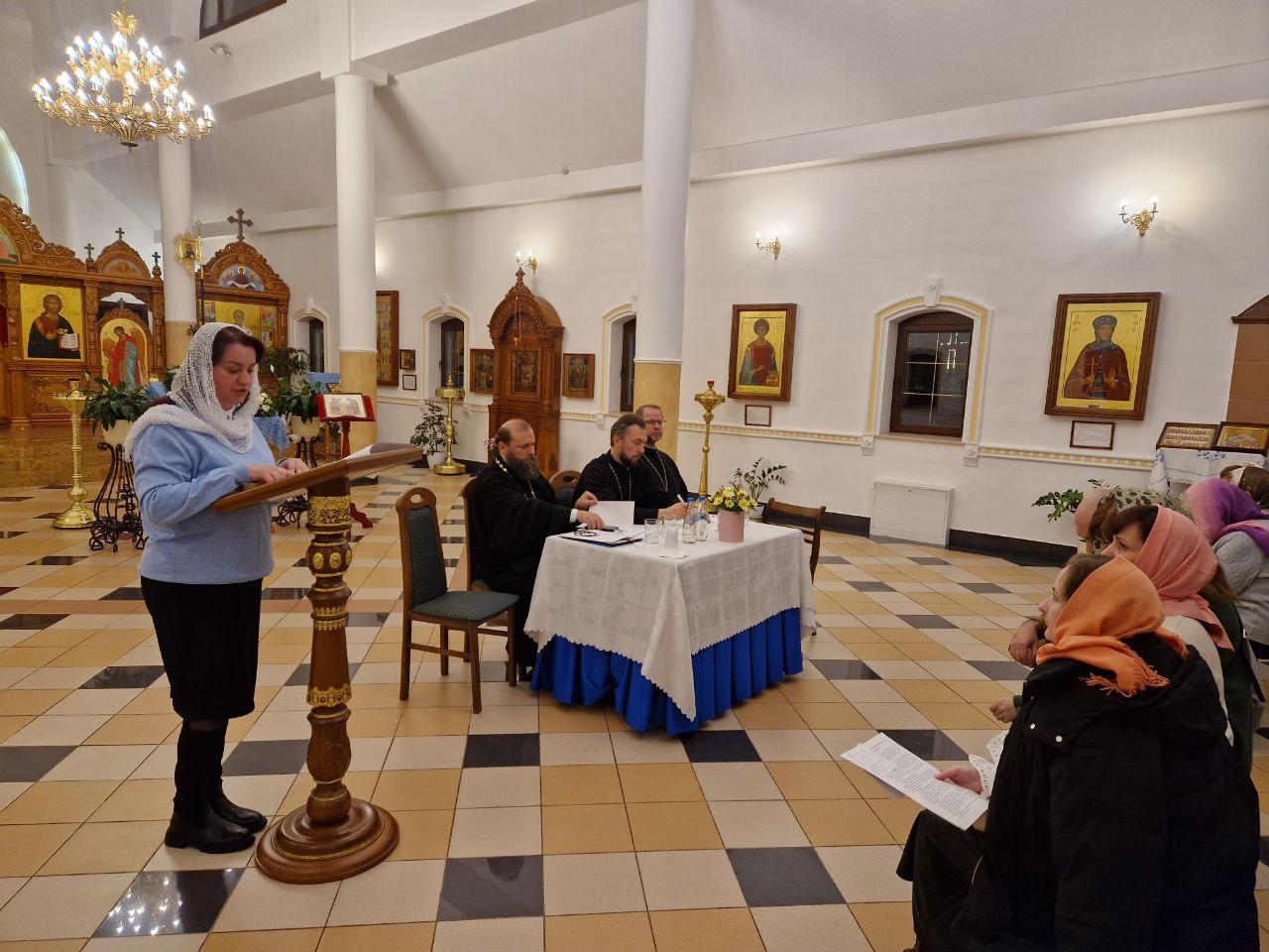 Казначей прихода доложил о финансовом состоянии. С докладами также выступили заведующая приходской библиотекой, старшая сестра сестричества, завуч воскресной школы и руководитель детско-юношеского хора «Николушки».