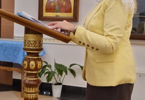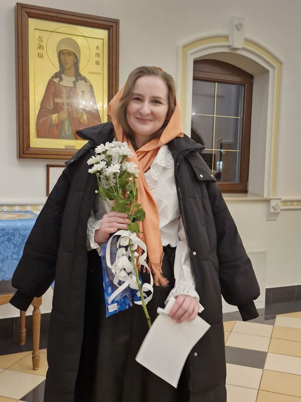 Отдельно было отмечено усердие руководителя хора Екатерины Бурец, которой по случаю дня тезоименитства настоятель объявил благодарность и вручил памятный подарок.