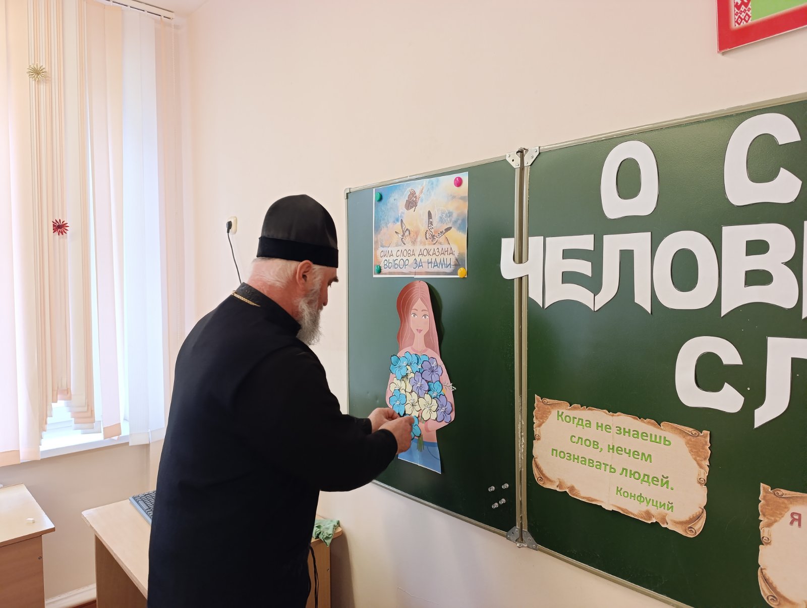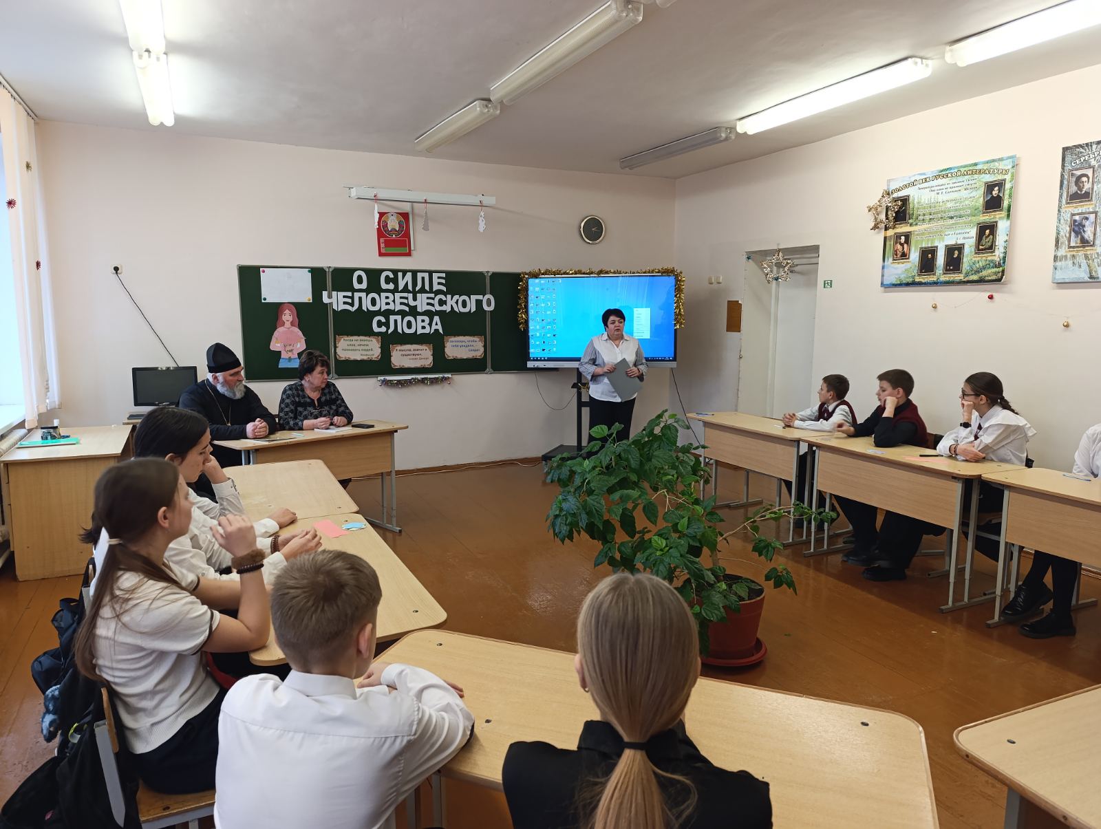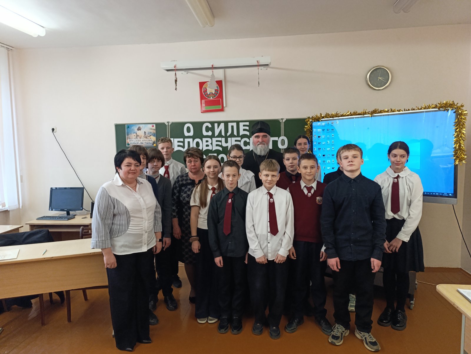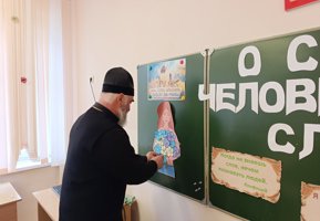 10 декабря настоятель храма преподобной Евфросинии Полоцкой аг. Пограничный протоиерей Сергий Шелест принял участие в дискуссии на тему «Сила человеческого слова» со старшеклассниками средней школы аг. Пограничный.