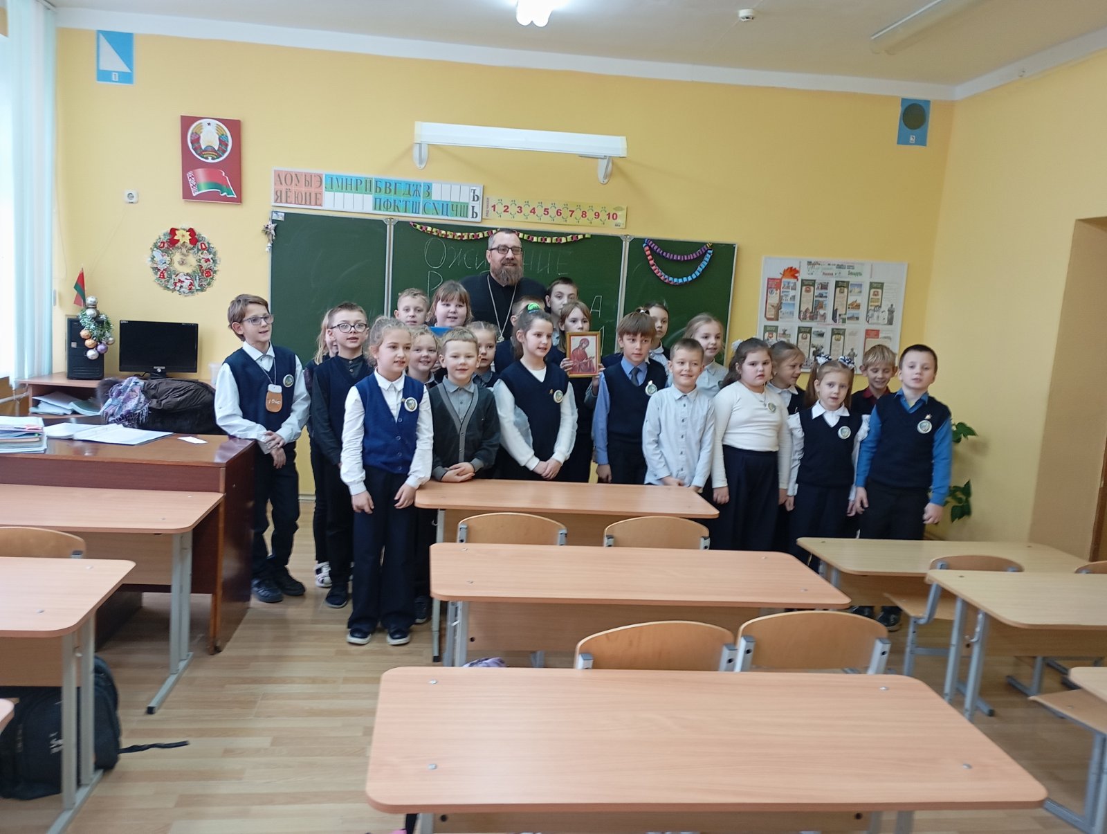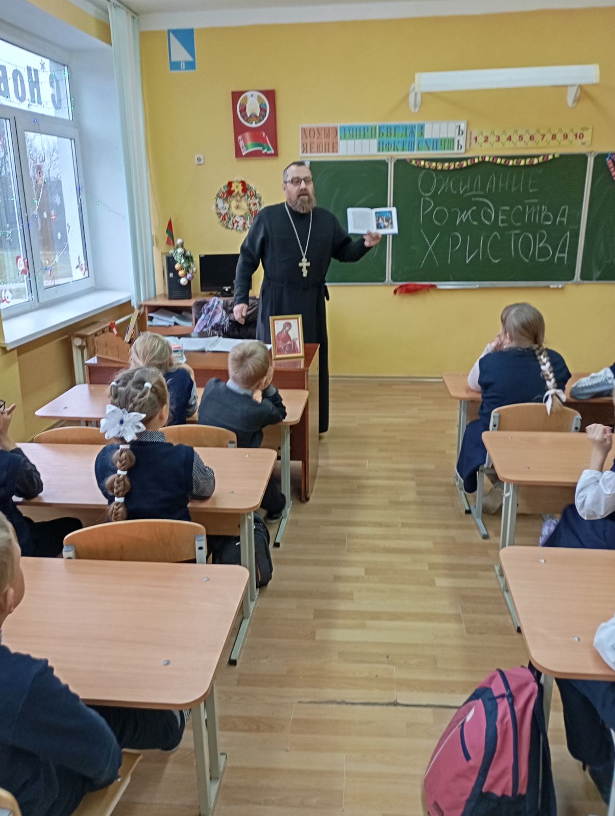 10 декабря настоятель прихода храма Рождества Пресвятой Богородицы деревни Мурованка иерей Олег Засим посетил государственное учреждение образования «Скрибовская средняя школа», где провел беседу с учащимися 1–4 классов на тему «Ожидание Рождества Христова».