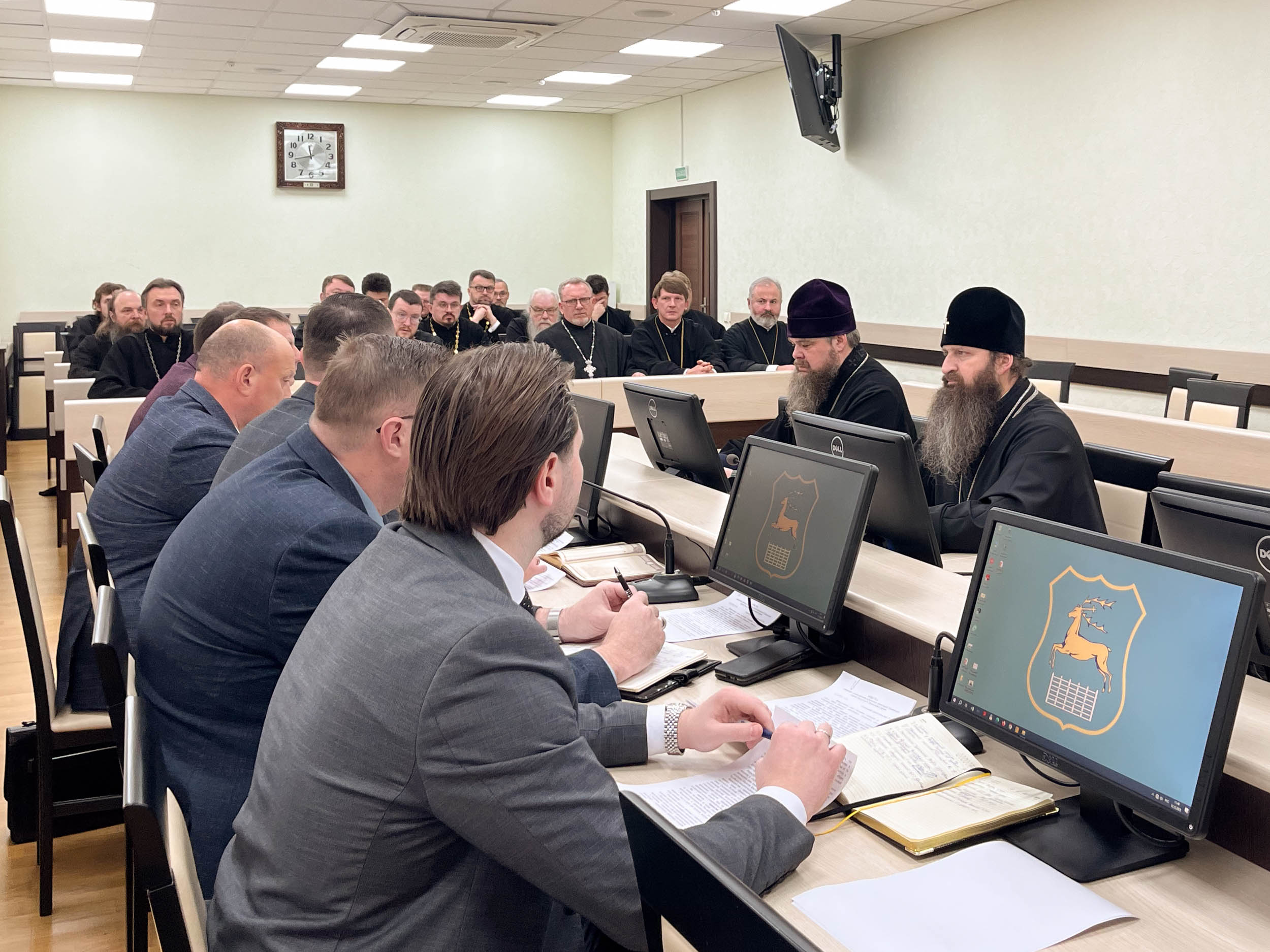 Во время встречи обсуждались вопросы храмового строительства, пожарной безопасности в зданиях приходов, соблюдения норм действующего законодательства и другие насущные темы.