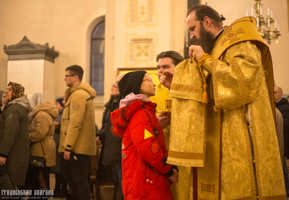 После чтения Евангелия Его Высокопреосвященство совершил помазание верующих елеем.