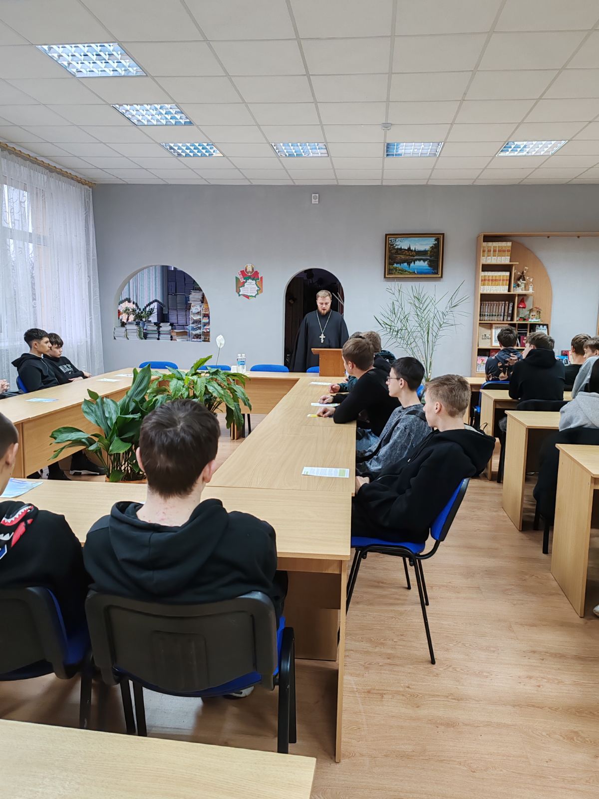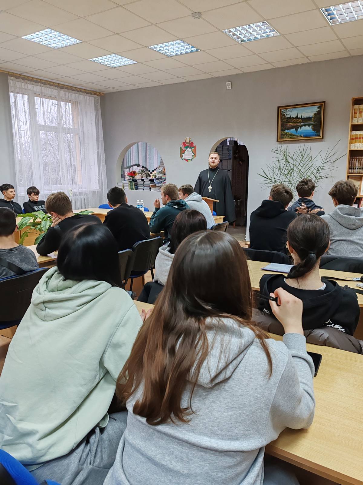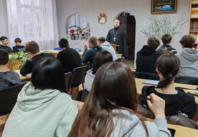 В ходе визита священнослужитель провел встречу с учащимися, в рамках которой состоялась беседа на тему: «Христианство как источник нравственности, культуры и традиций».