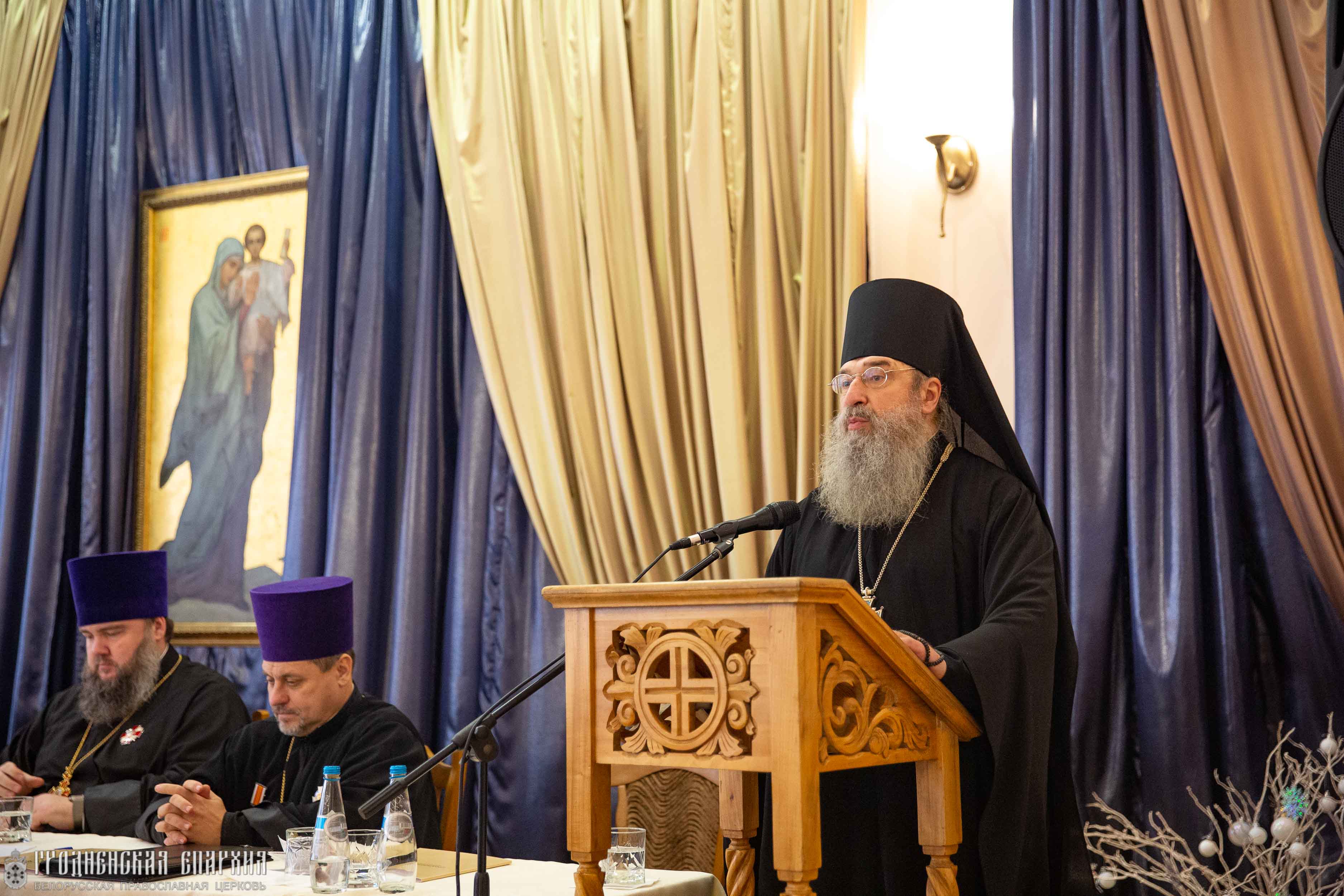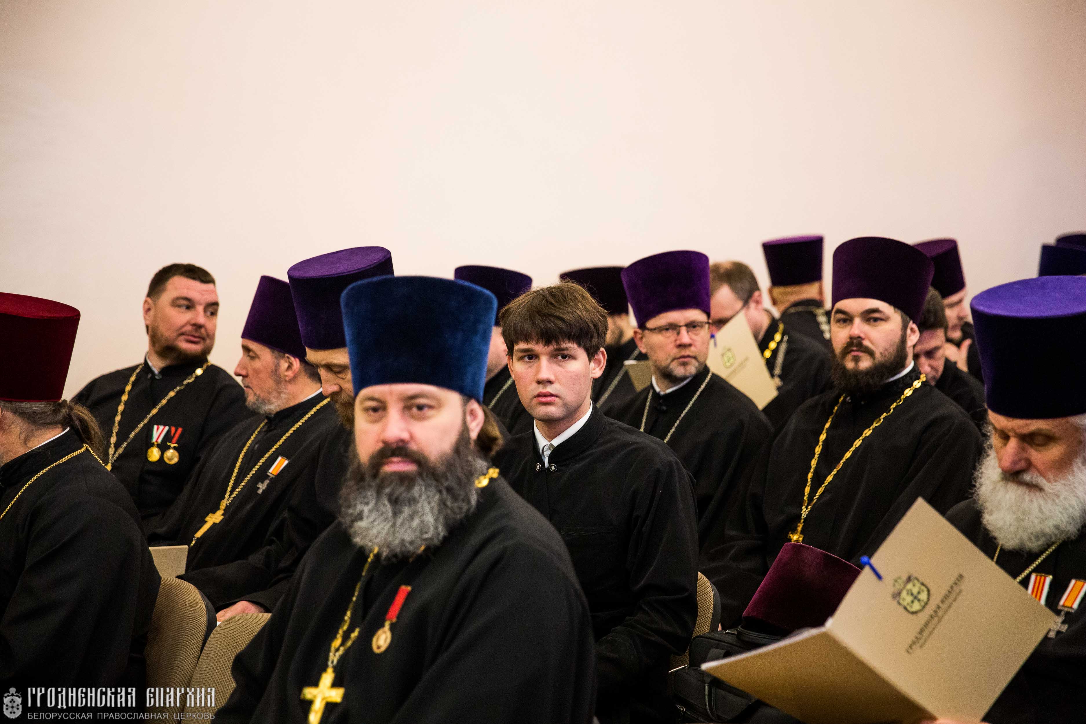 Его Высокопреосвященство выразил сердечную благодарность всем священнослужителям Гродненской епархии, членам Епархиального совета, отцам благочинным, руководителям и сотрудникам епархиальных отделов и комиссий, волонтерам епархии за плодотворные труды на ниве строительства, реконструкции и благоукрашения храмов, религиозного образования и катехизации, миссионерской работы и просвещения молодежи, социального служения и благотворительности, развития православных медиаресурсов, защиты христианских семейных ценностей, природоохранной деятельности.