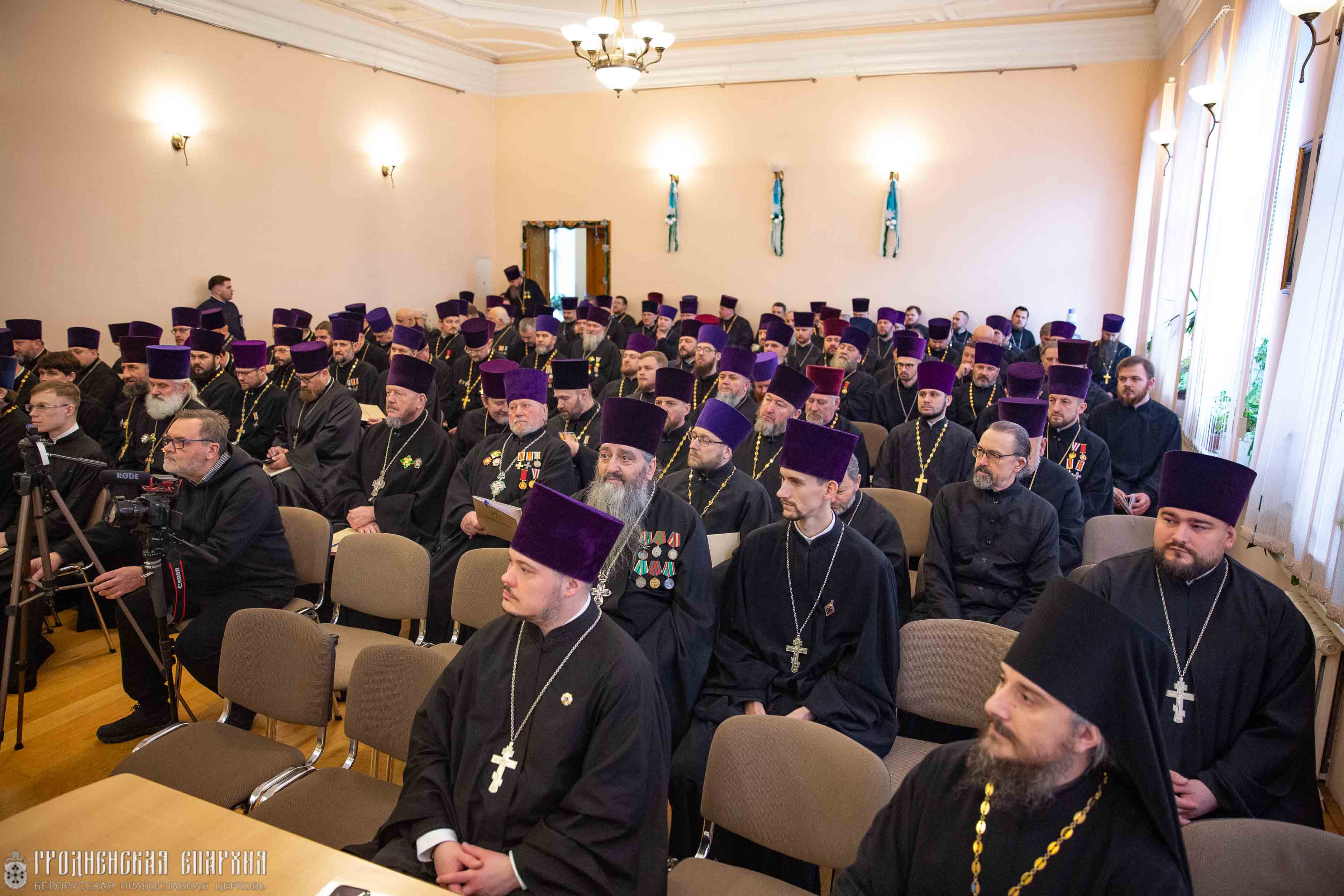 Правящий архиерей отметил, что каждому клирику Гродненской епархии надлежит неустанно и ревностно осуществлять пастырское служение, усердно проповедовать Слово Божие, постоянно повышать свой образовательный уровень, глубоко изучая Священное Писание и творения святых отцов, неопустительно совершать личное молитвенное правило и со вниманием относиться к просьбам паствы о молитвенной поддержке, своей жизнью являть пример горячей веры, деятельной любви к ближним и самоотверженного послушания Святой Церкви.