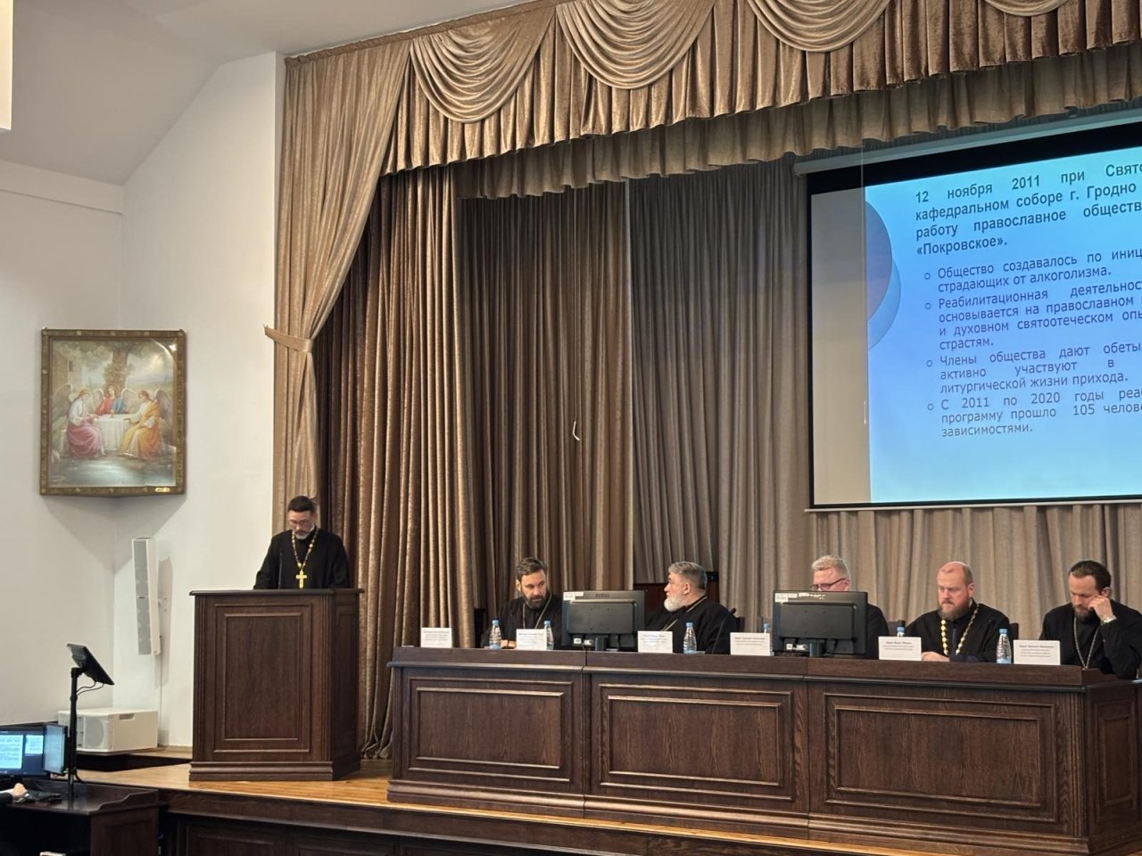 В рамках чтений священнослужитель выступил на конференции «Аспекты формирования здоровой личности и пагубные стереотипы современности: влияние на молодежь» с докладом на тему «Алкогольная и наркотическая зависимости. Церковный взгляд на проблему и опыт реабилитации страждущих в Гродненской епархии».
