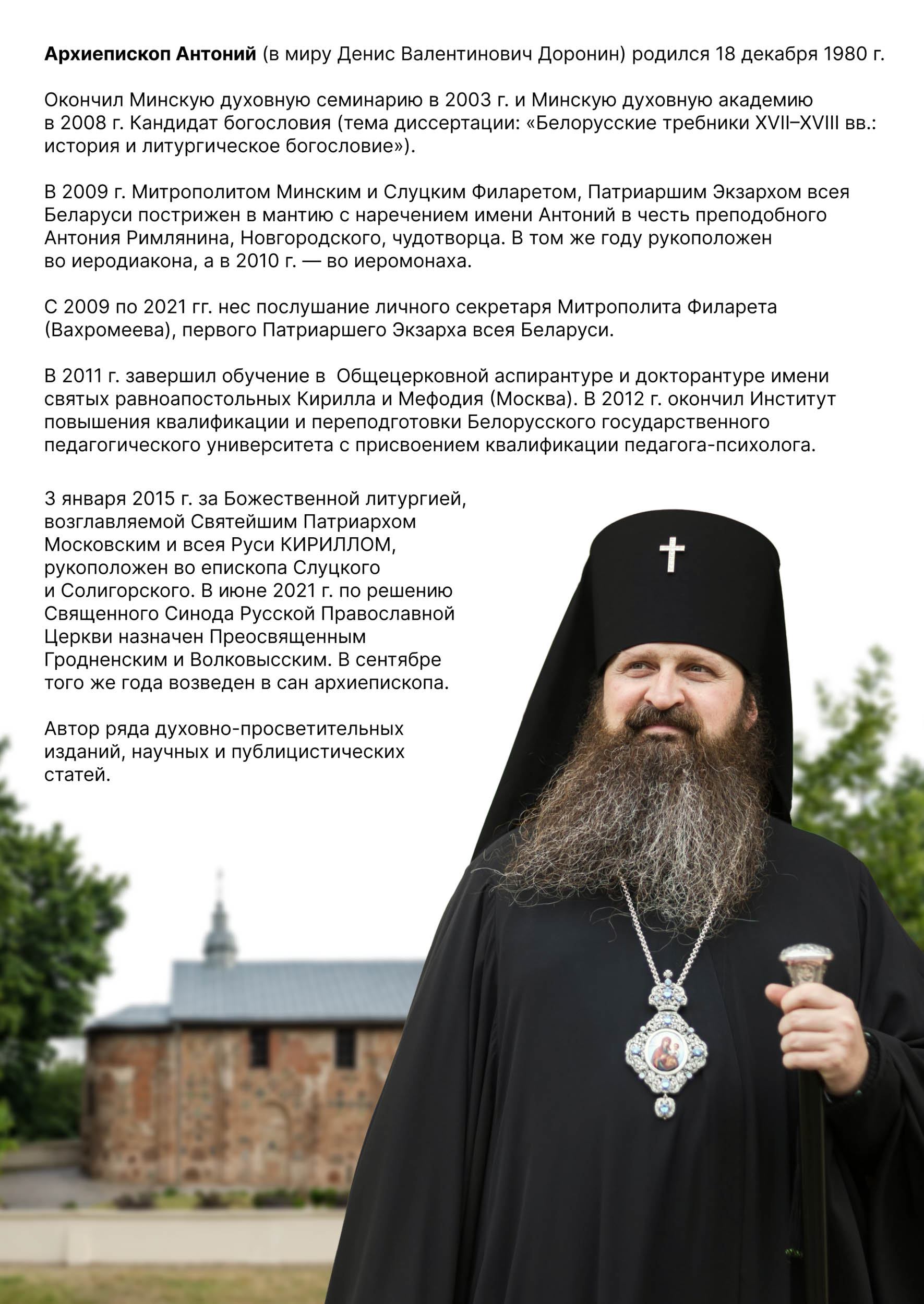 В издательстве «Астер Плюс» (Россия, г. Пермь) вышла книга архиепископа Антония (Доронина) «От скорби к радости». Издание насчитывает 432 страницы, рекомендовано к публикации Издательским советом Белорусской Православной Церкви и посвящено 125-летию Гродненской епархии.