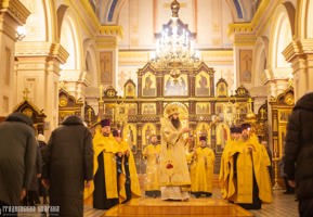 Его Высокопреосвященству сослужили: протоиерей Григорий Беляцкий, настоятель кафедрального собора Покрова Пресвятой Богородицы; иерей Александр Гук, руководитель отдела по церковной благотворительности и социальному служению и клирики кафедрального собора.