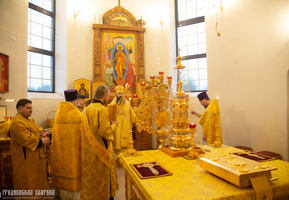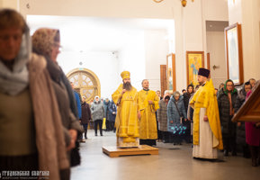 Его Высокопреосвященству сослужили: ключарь Архиерейского подворья иерей Евгений Коваль, клирик подворья иерей Александр Дьяченко.