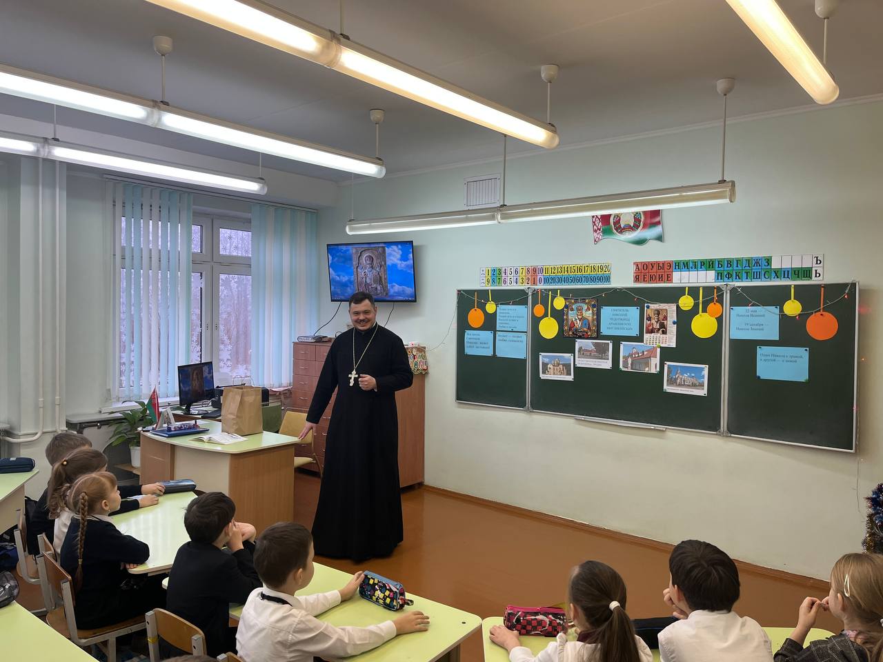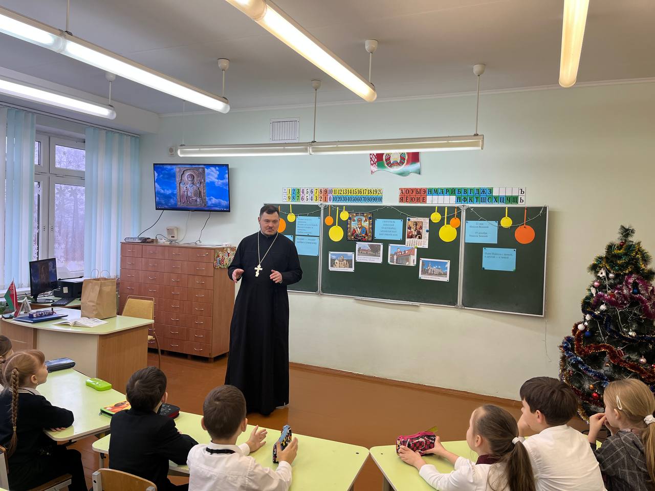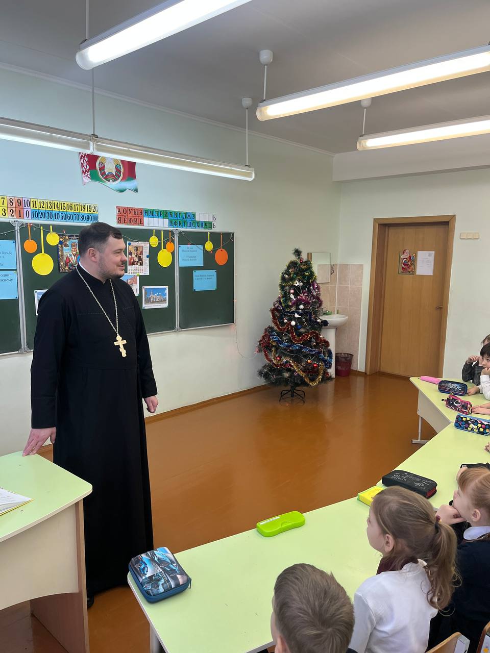 19 декабря клирик прихода храма Собора Белорусских святых — Архиерейского подворья иерей Александр Дьяченко встретился с учениками 2 «В» средней школы № 38 имени Кирилла Туровского г. Гродно.