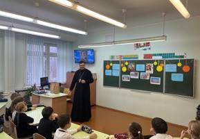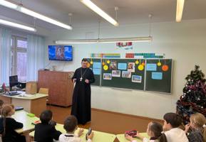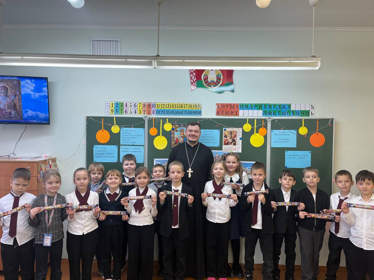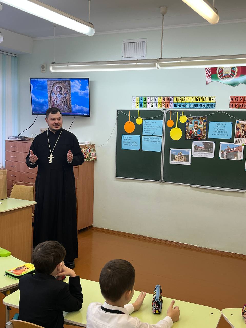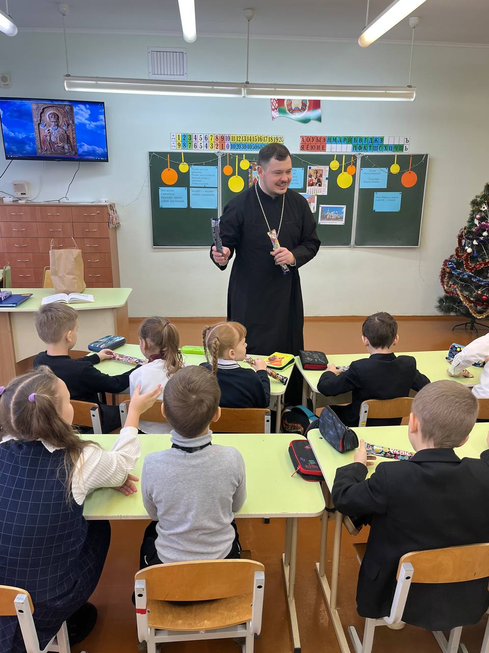 19 декабря клирик прихода храма Собора Белорусских святых — Архиерейского подворья иерей Александр Дьяченко встретился с учениками 2 «В» средней школы № 38 имени Кирилла Туровского г. Гродно.