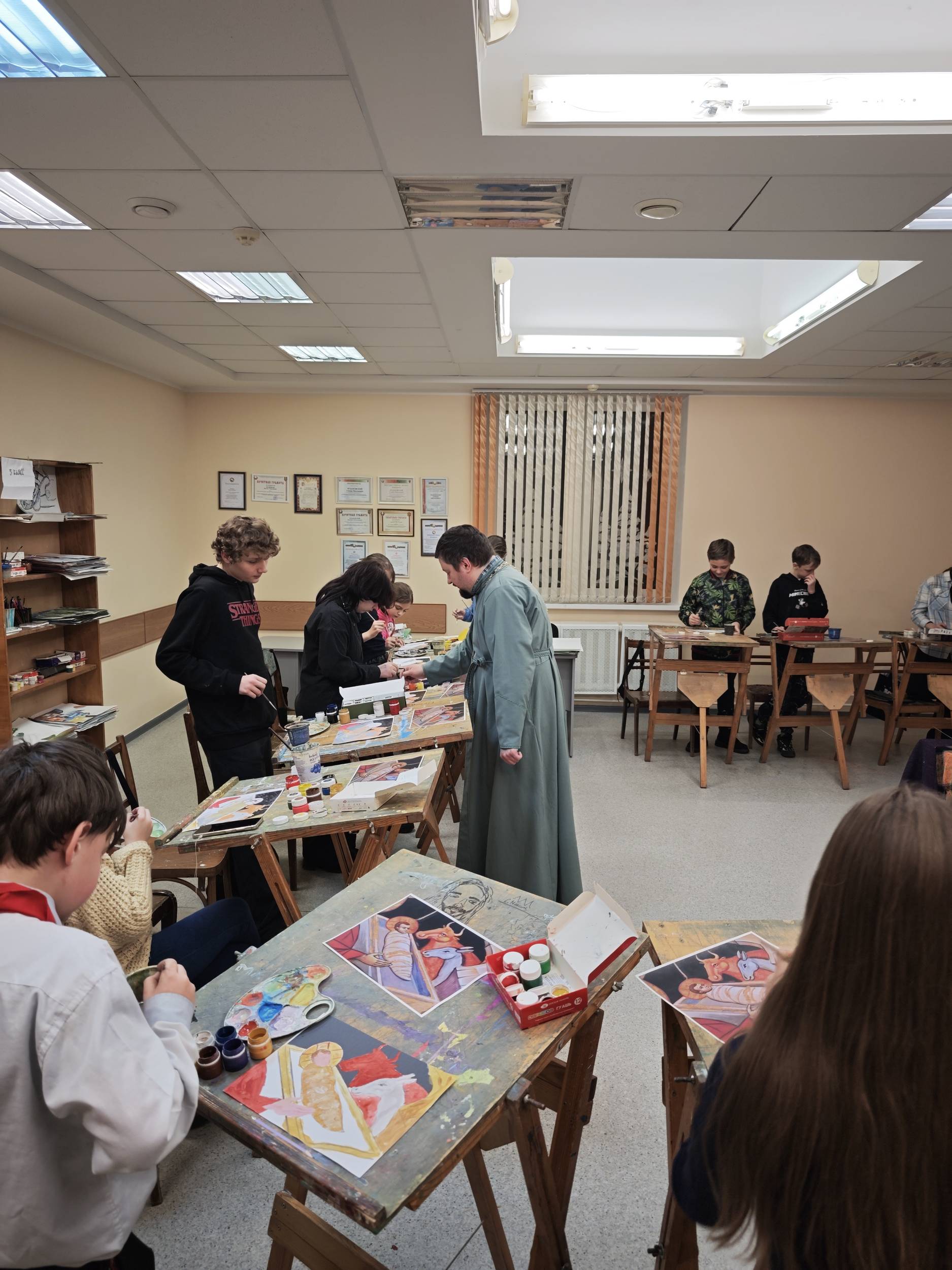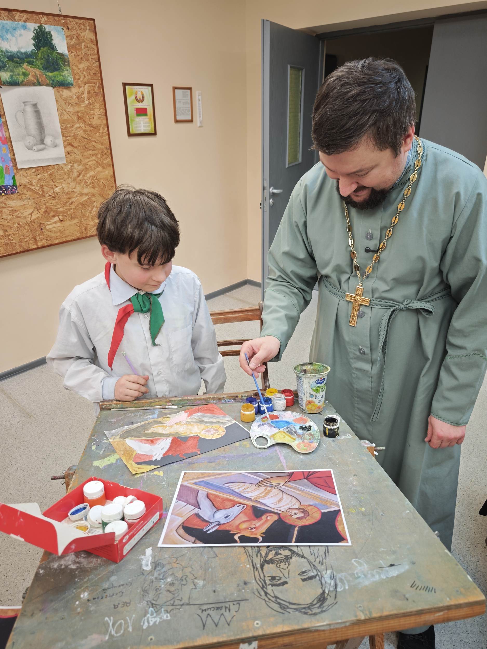 Иерей Дионисий Черняев провел мастер-класс по иконописи для учащихся детской школы искусств г. Свислочи
