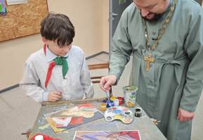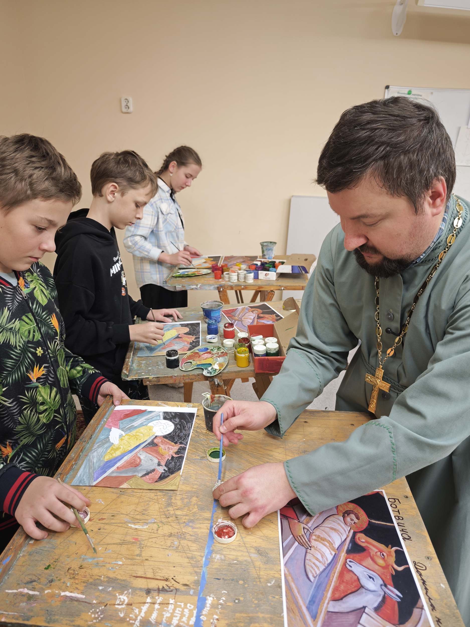 В ходе занятия под руководством священнослужителя дети работали над фрагментом иконы «Рождество Христово». Отец Дионисий рассказал участникам о духовном смысле праздника и оказал помощь каждому ребенку в процессе творческой работы.