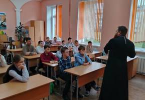 11 декабря клирик кафедрального собора святых апостолов Петра и Павла г. Волковыска иерей Антоний Федосеев провел беседу с учащимися шестых классов государственного учреждения образования «Средняя школа № 3 г. Волковыска» о православном понимании нравственности, морали и этики.