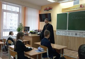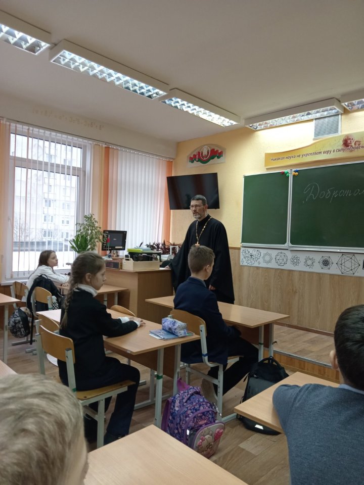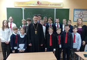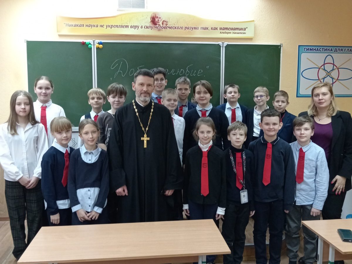В рамках визита состоялась встреча с учащимися 5 «Б» класса, посвященная теме «Добротолюбие». Священнослужитель побеседовал с учащимися о значении доброделания, внимательного и доброго отношения к ближним, а также о важности воспитания в себе христианских нравственных качеств.