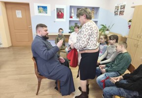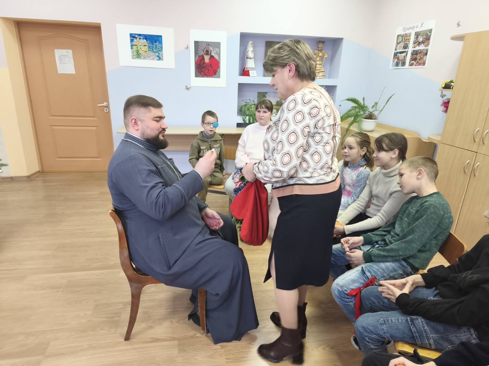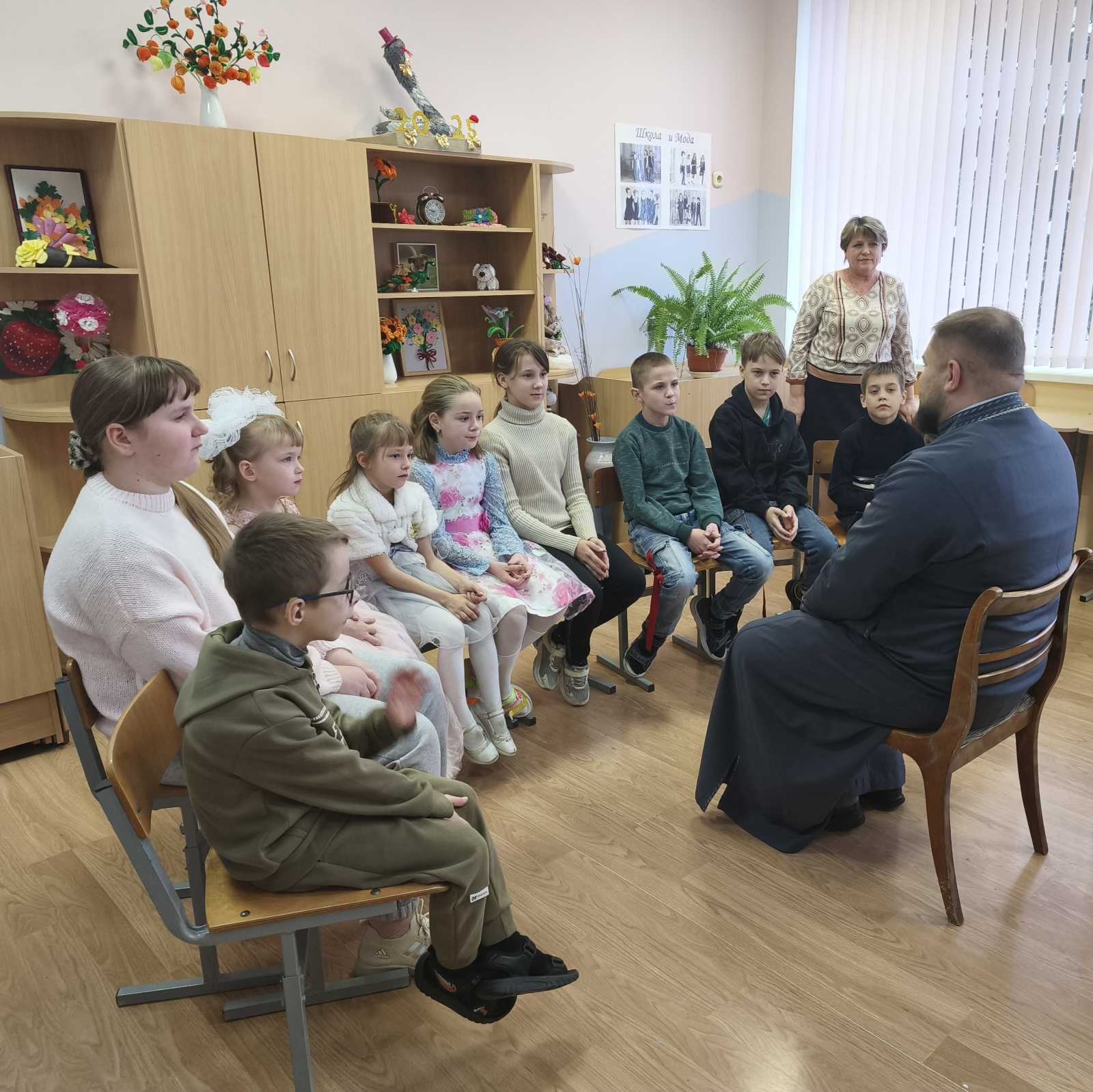 В ходе визита священнослужитель побеседовал с учащимися начальных классов. Иерей Димитрий рассказал детям о празднике Рождества Христова, напомнив евангельское повествование от Матфея и духовный смысл этого события.